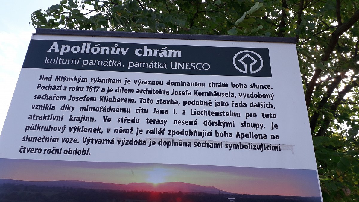 Brzská ranní procházka započala v zámeckém parku Lednice, přes lázeňskou kolonádu k malé rozhledně a pak kolem rybníku k Apollonovému chrámu.