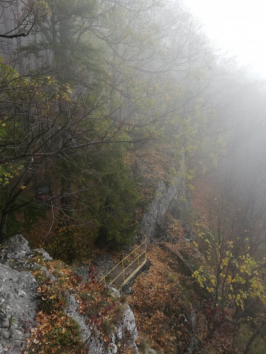 Bohužel dnešní výšlap byl ve znamení mlhy. Ze Štramberka po naučné stezce směr pod Červeným kamenem, Janíkovo sedlo a na Raškovu vyhlídku.Z vyhlídky na hrad Šostýn a do Kopřivnice.