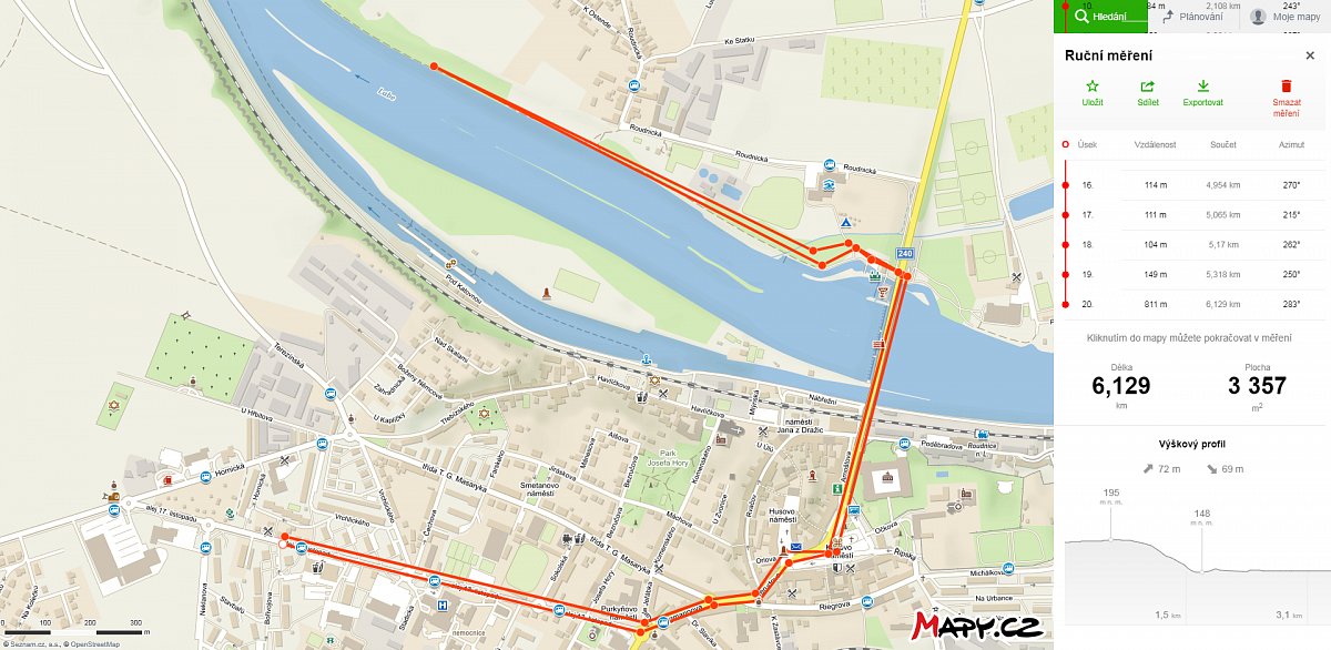 Vyrazila jsem ze sídliště přes město a z náměstí přes most přes Labe. Na druhé straně Labe jsem se vydala podél kanoistického kanálu přes pláž pěšinou podle Labe na úroveň vsi Vědomice. Stejnou cestou zpět.