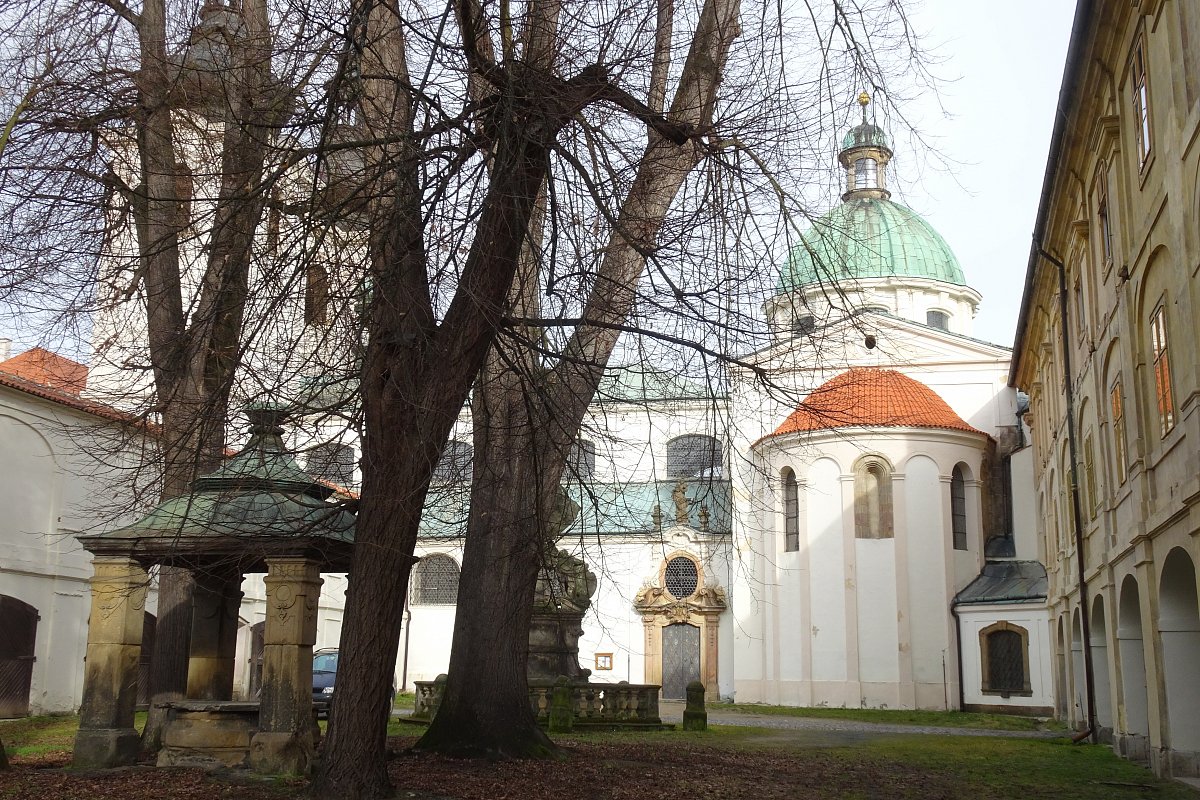 Výlet z Hrdel do Doksan. V Hrdlech je zámek dle projektu K.I.Dientzenhofera, v Dolánkách kostel a v Doksanech klášter sester premonstrátek.