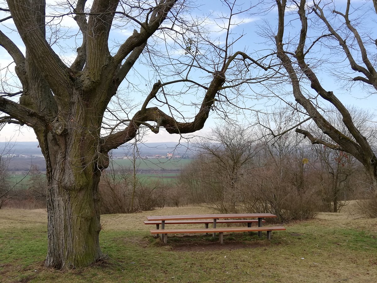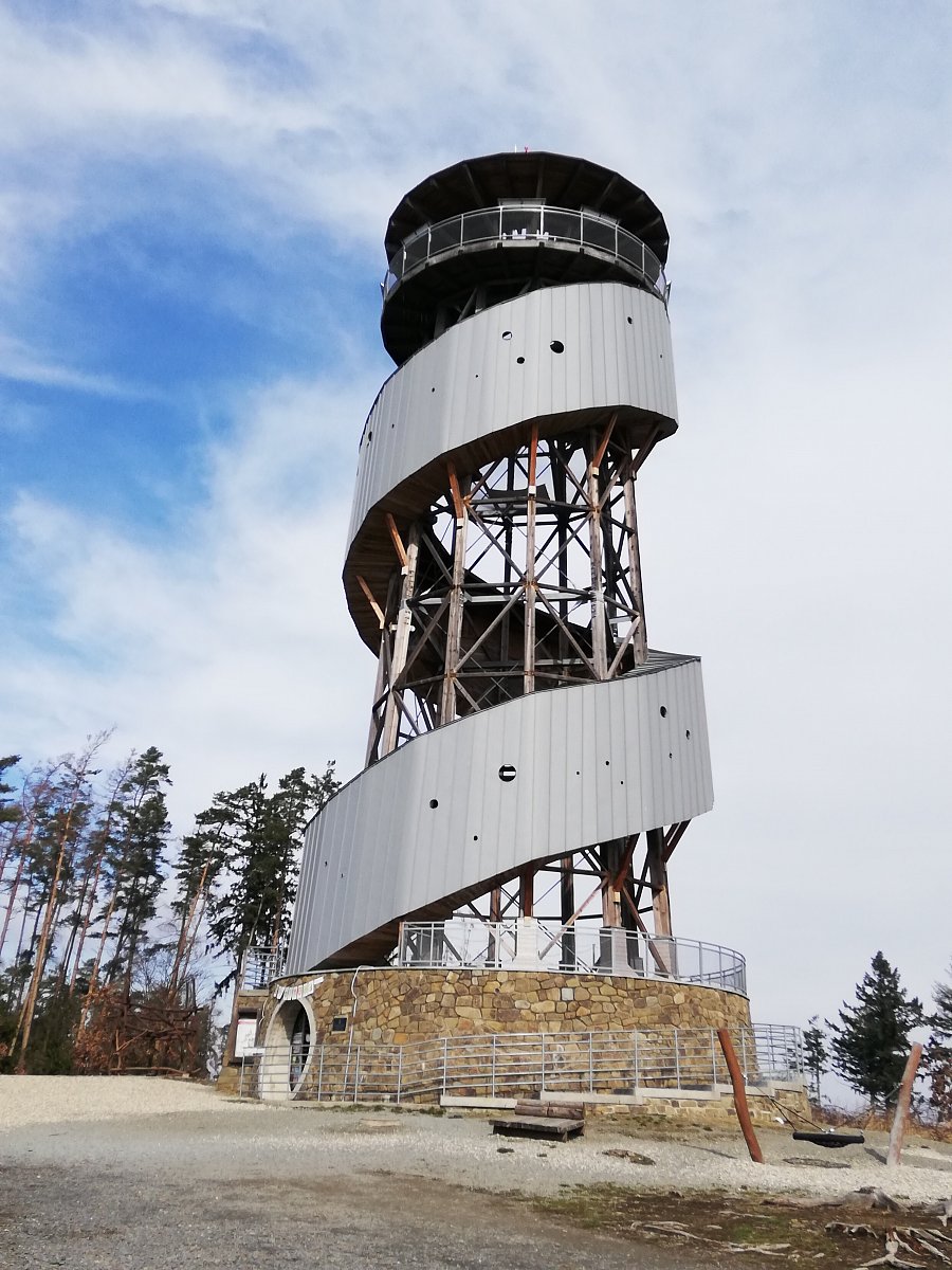 Z vesničky Kaple jsme šli směrem na rozhlednu Čechy pod Kosířem. Bohužel v zimě je rozhledna uzavřena,tak jsme si opekli špekáčky a pokračovali na Malý Kosíř a dál do lázní Slatinice.
