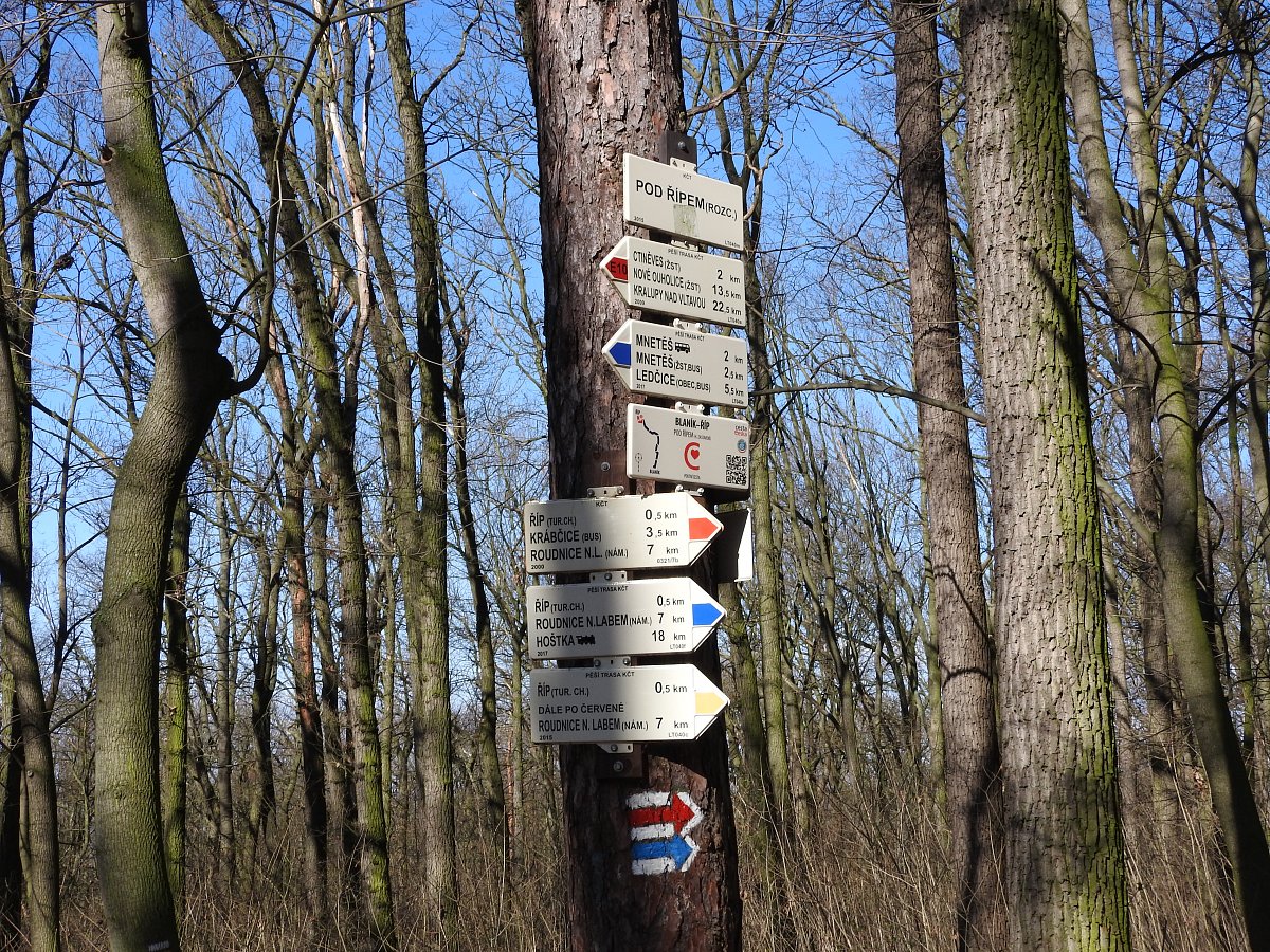 Start ve Vražkově, kde začíná žlutá tur. značka na Říp. Přes Vražkov na Říp, tady žlutá končí. Dál pokračovat přes Říp do Krabčic, Rovného. Možno až do Roudnice nad Labem.