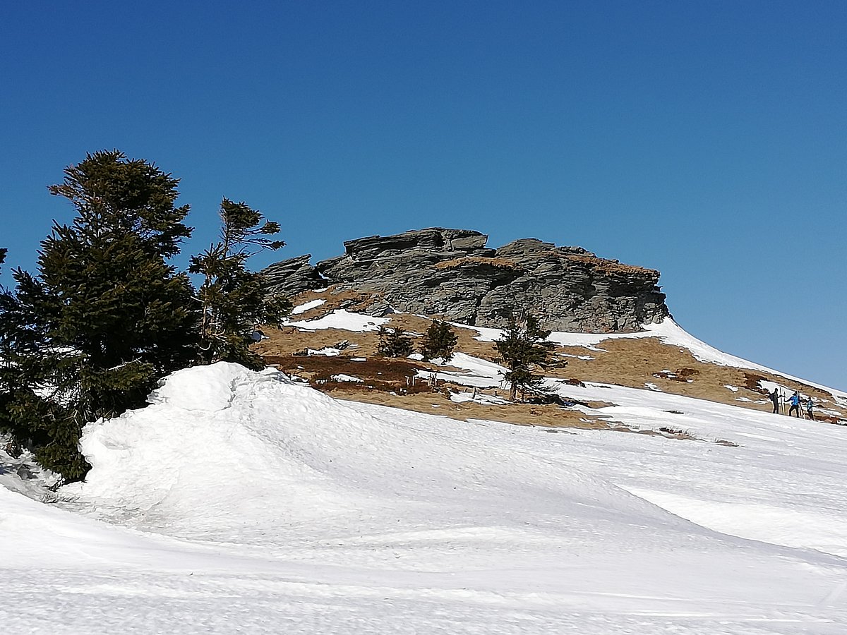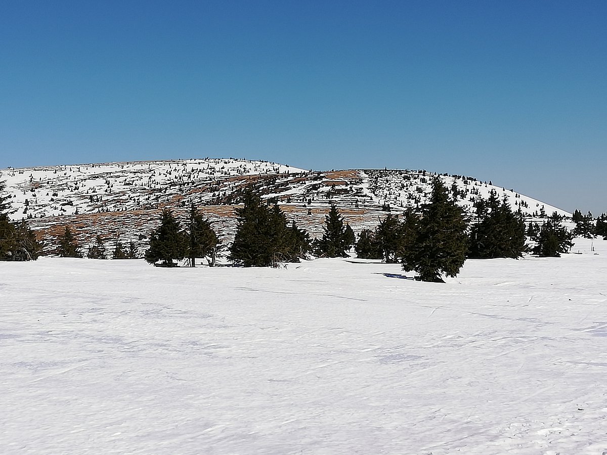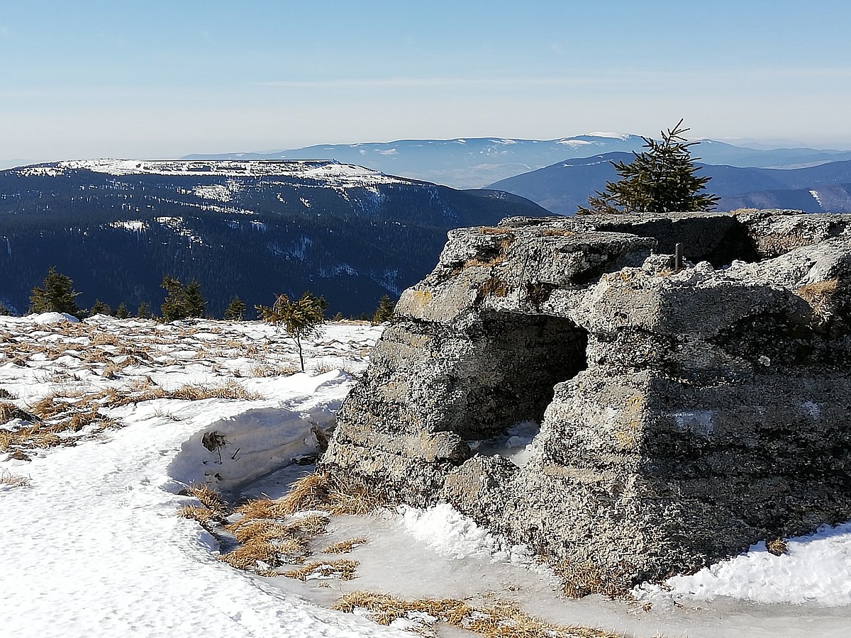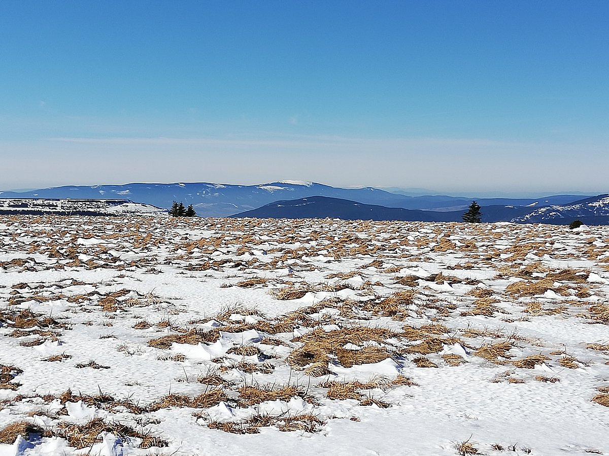 Nedělní výšlap za sluníčkem a sněhem z Ovčárny kolem Petrových kamenů, na Vysokou holi k Jelení Studánce a zpět tou samou trasou. Místy sníh, led ale i travnaté plochy.