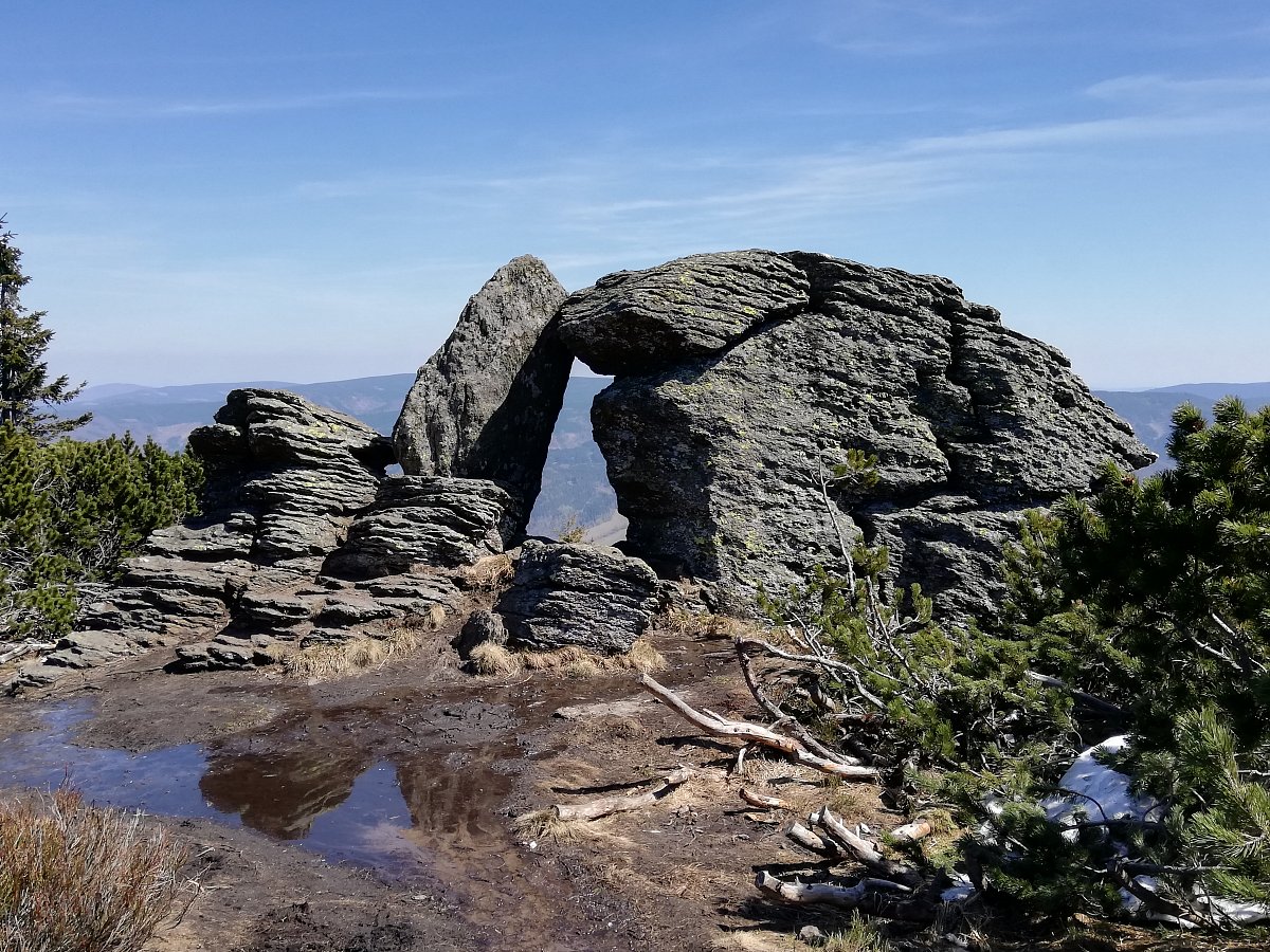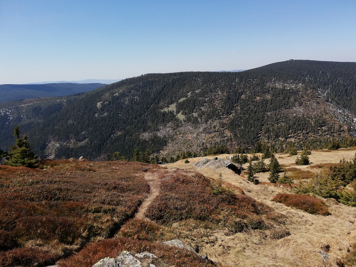 Pěšky na nádraží a pak vlakem a busem na Červenohorské sedlo. Dál k Bílému sloupu, na Červenou horu, potom dolu k Vřesové studánce, ke Kamennému oknu a dál na Sedlo pod Vřesovkou. Pokračovala jsem potom k Hučivé Desné a do Koutů nad Desnou. Z nádraží opět pěšky domů.