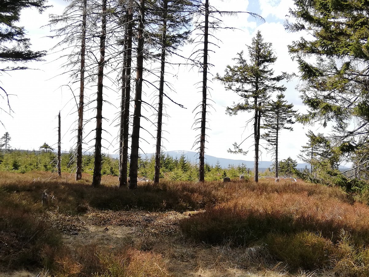 Olomouc je rozkopaná, tak opět pěšky na nádraží a vlakem do Ramzové. Tam přes Petříkov na Smrk na polskou hranici, přes přírodní památku směrem na Horní bar, Lesní bar a do Horní Lipové. V Ol. opět pěšky domů. Krásný den v hezké přírodě.