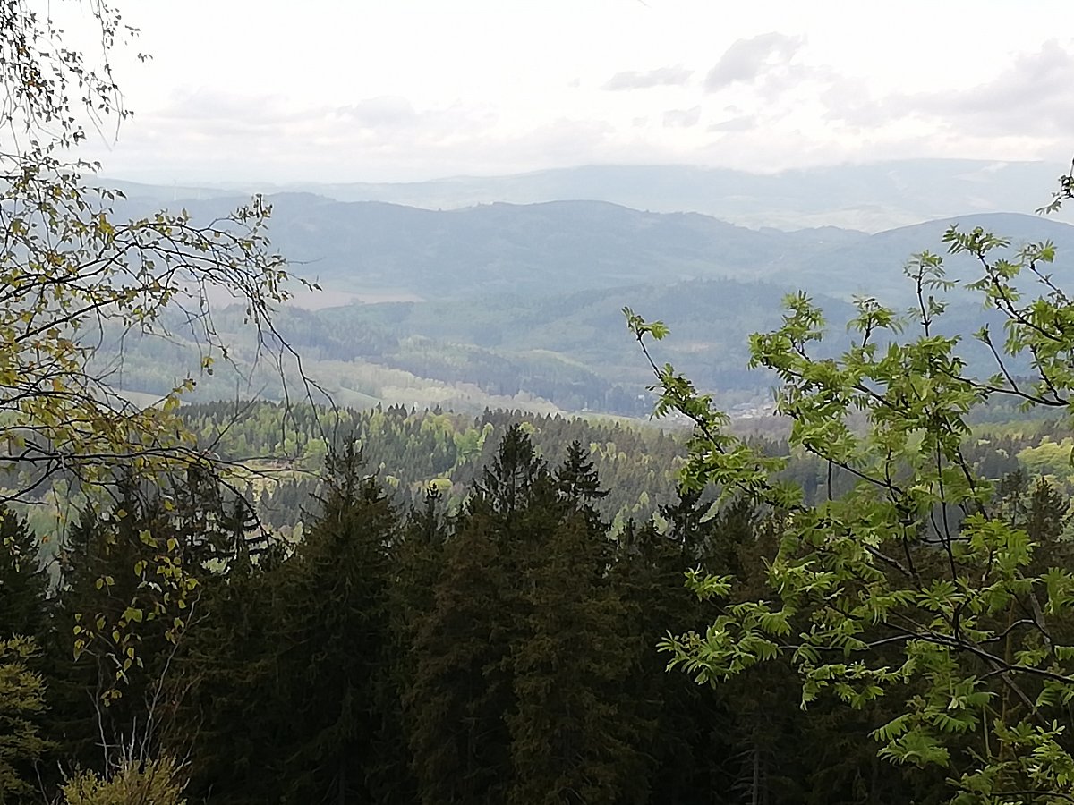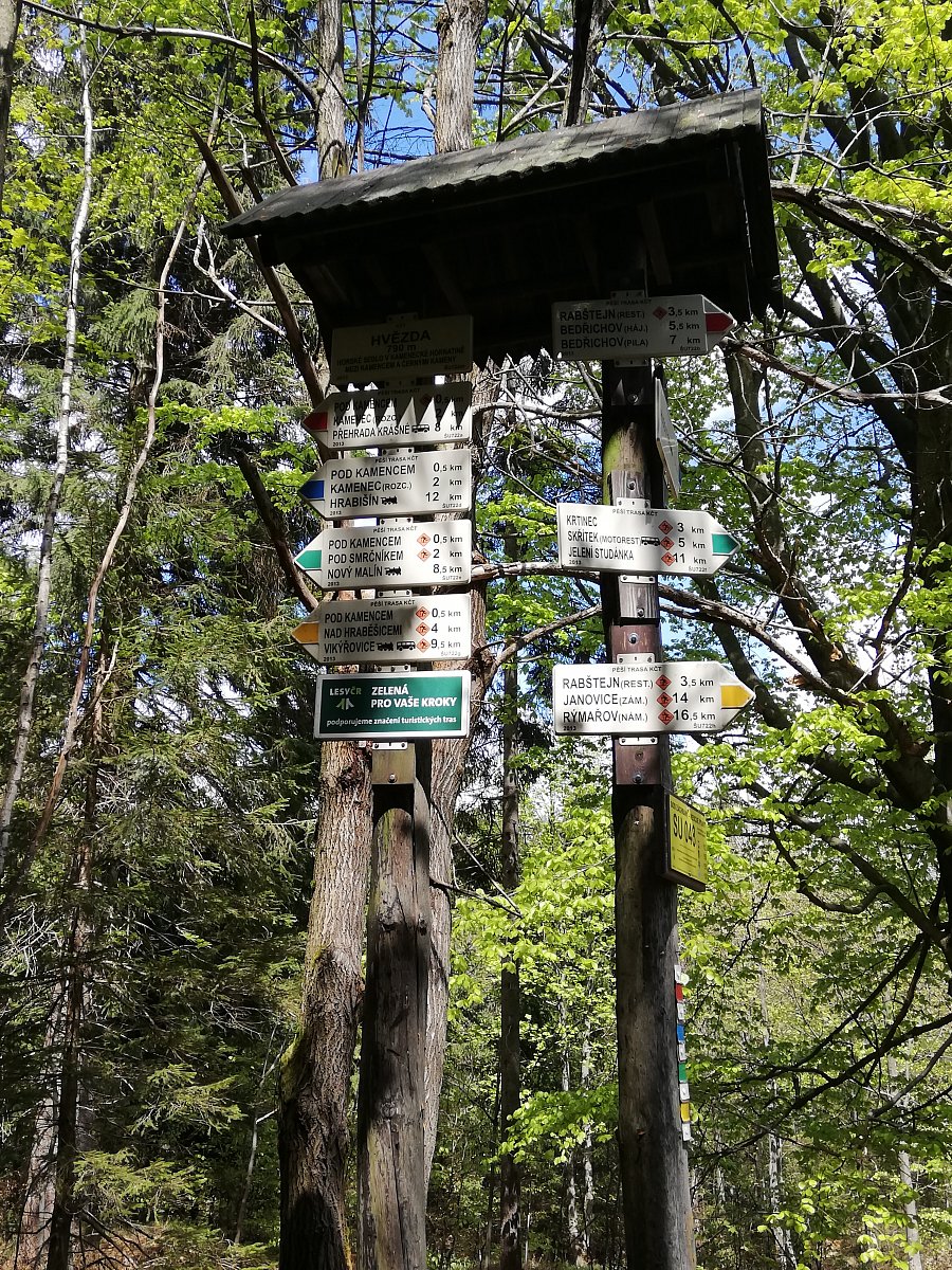 Krásný okruh od motorestu Skřítek po zelené na Hvězdu, dále po červené k restauraci Rabštejn a výstup na Rabštejn. Zpátky po modré k motorestu Skřítek. Jsou tu nádherné smíšené lesy a úžasné výhledy do okolí. Občas sprchlo, občas svitilo sluníčko...