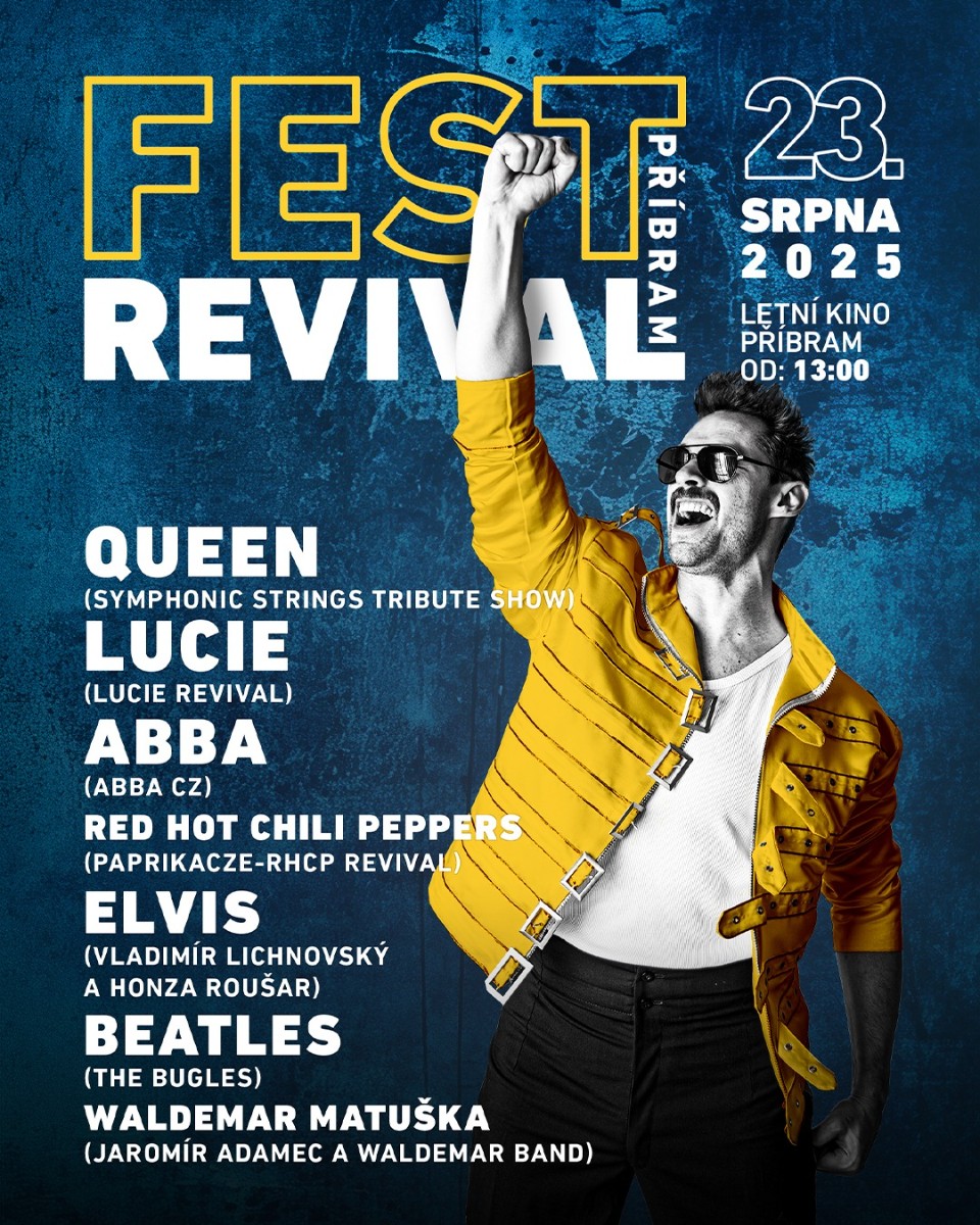 15. 4. 2025V sobotu 23. srpna 2025 ožije areál Letního kina v Příbrami největšími hity hudebních legend na prvním ročníku festivalu Fest Revival. Na jednom pódiu se představí sedm fenomenálních revivalových kapel, které přinesou nezapomenutelné melodie a atmosféru.
