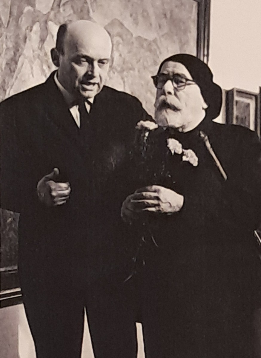 Výřez fotografie – Oldřich Kuba a Jan Zrzavý v ZČG Plzeň při vzpomínkové akci na Bohumila Kubištu 25.11.1968
