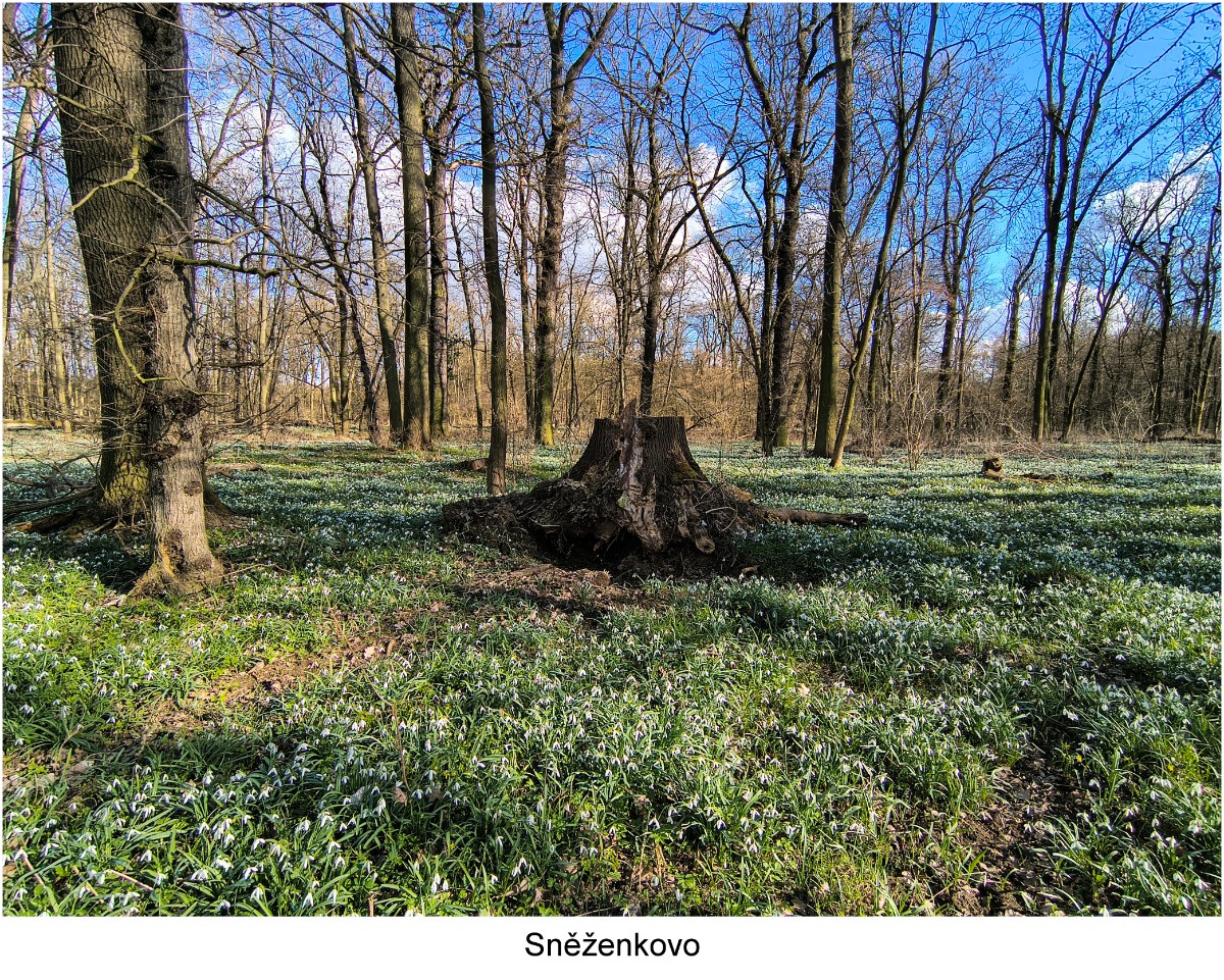 Sněženka podsněžník, jak zní celé její jméno, má ráda vlhko a klid lužních lesů. Jedno z míst, kde sněžek roste tolik, že to vypadá, jako kdyby nasněžilo, mám skoro u nosu. Na břehu Labe v Dobříni se rozkládá dnes už jen zbytek prastarého lužního lesa. Každoročně brzy zjara rozkvete ohromným množstvím něžných bílých kvítků. Chodím tam léta letoucí každý rok a zas a znovu žasnu nad jejich krásou.