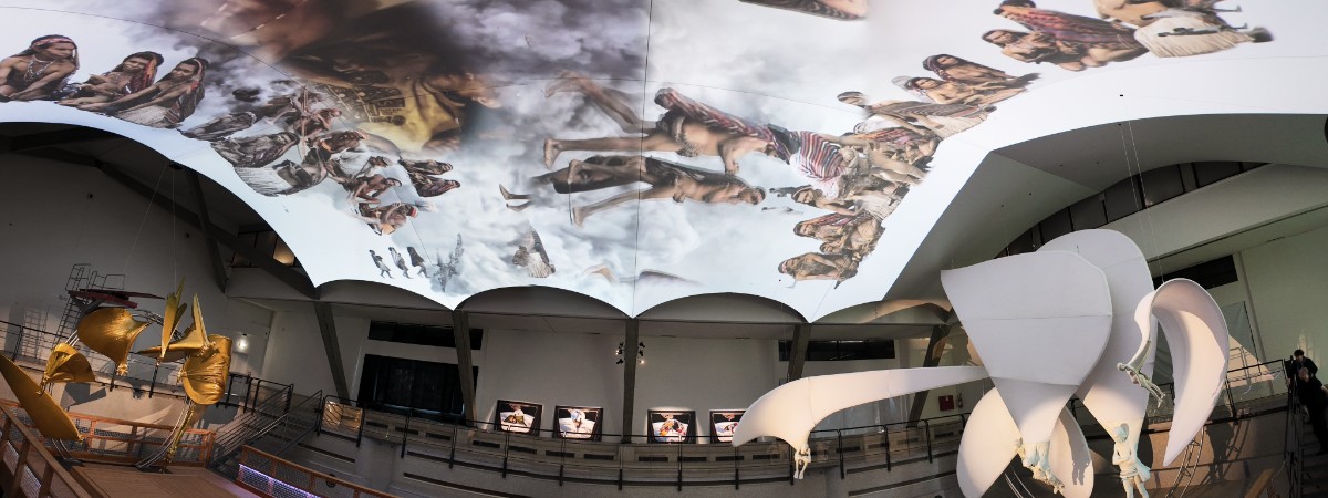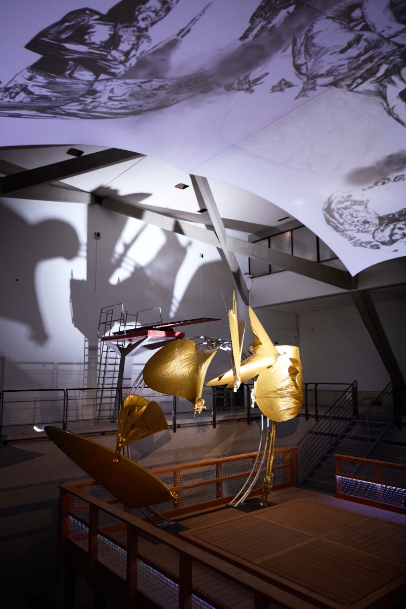 Bývalý bazén Gandini na ostrově San Giorgio Maggiore se proměnil v multimediální prostor. Animovaná filmová Nebesa s názvem Jak se dotknout Nebe popisují vnitřní svět Papuánců tak, jak jej sami vyprávěli; živé filmové záběry jsou svědectvím o událostech, které se skutečně odehrály v džungli i ve vesmíru. Filmová Nebesa, promítaná na strop jako freska, obsahují dva vesmírné telefonáty z let 2013 a 2022, kdy se astronaut NASA Koichi Wakata spojil z Mezinárodní vesmírné stanice (ISS) s náčelníky papuánského kmene, kteří mají schopnost létat k nebi pomocí kouře. Filmová díla ukazují příběhy obydlené skutečnými lidmi i duchy, kteří se stejně jako jejich předkové a jako astronauti dotkli Nebe. To, co nebylo možné vyfotografovat nebo nafilmovat, bylo nakresleno a zanimováno.