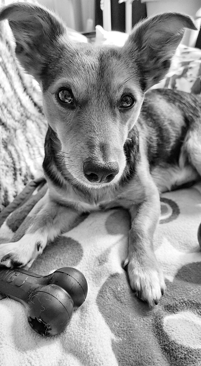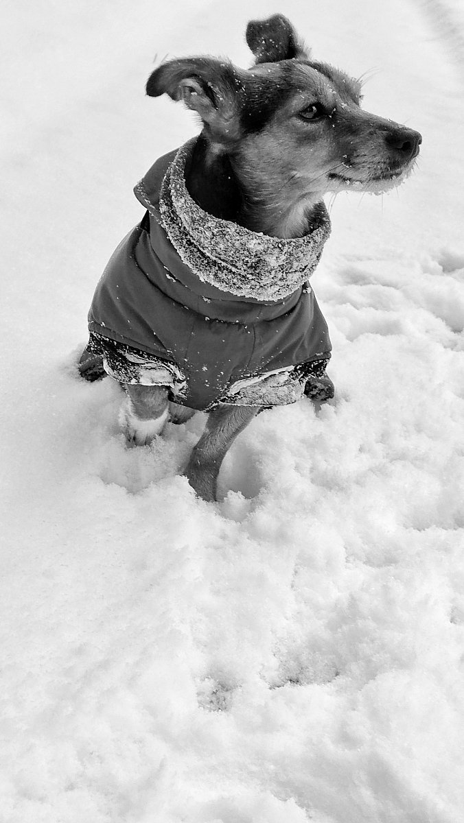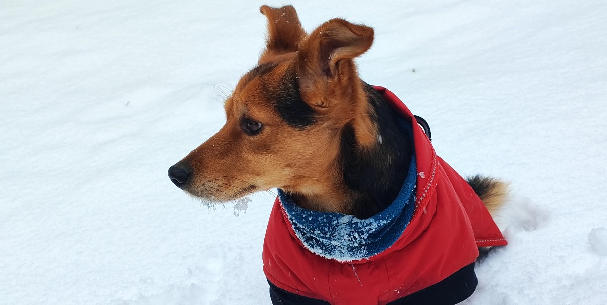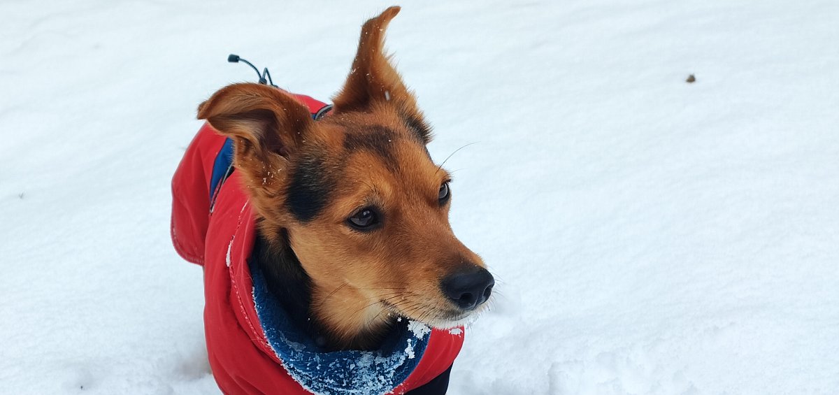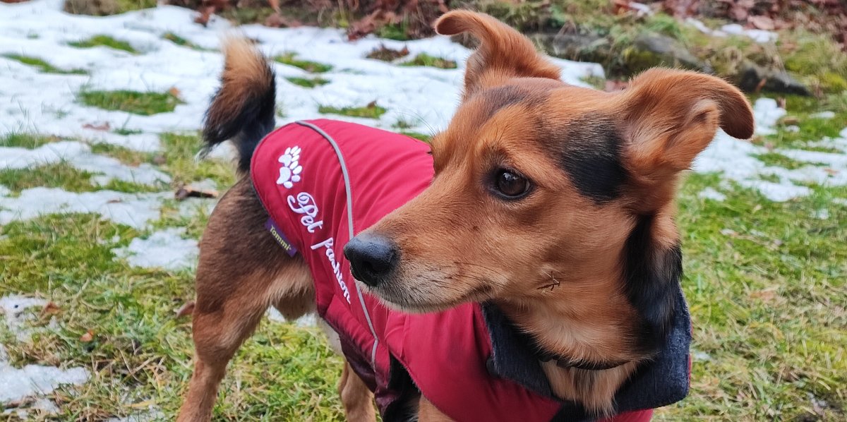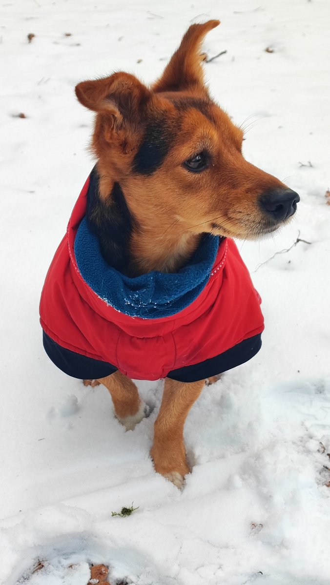Dnes to budou čtyři měsíce, co jsme spolu. Užili jsme si sníh - nosil téměř nový kabát po Robinovi, nosí po něm postroj. Má nový pelíšek, nový ještě jeden kabát na zimu, novou pláštěnku. Hračky má nerozbitné - kost a míček. Miluje, když mu míček házím. Měl nejdříve často průjmy, nyní má krůtí krmivo a zdá se, že už je to dobré. Měl i menší kožní problém, ale ten jsme zvládli. Je super, že si nechá ostříhat drápky a bez problémů ho položím na záda. Je na mě hodně závislý, špatně snáší, když jdu nakoupit, ale doma sám je hodný. Venku mi občas radostí skáče na nohy, jakoby mi chtěl říci, jsem šťastný, že tě mám.