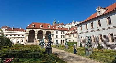 Zahradní sochy od Adriaena de Vriese jsou repliky originálů odnesených švédskými vojáky v r. 1648 jako součást válečné kořisti.
