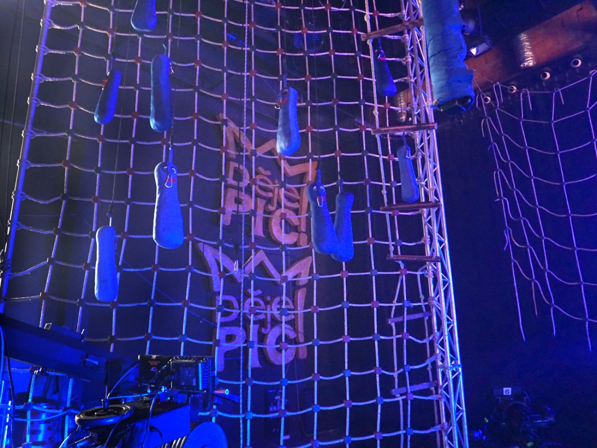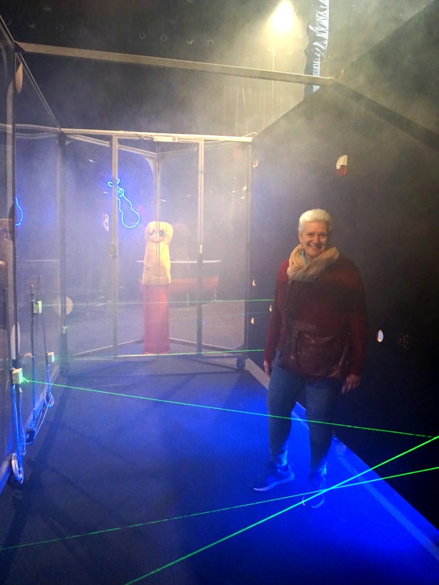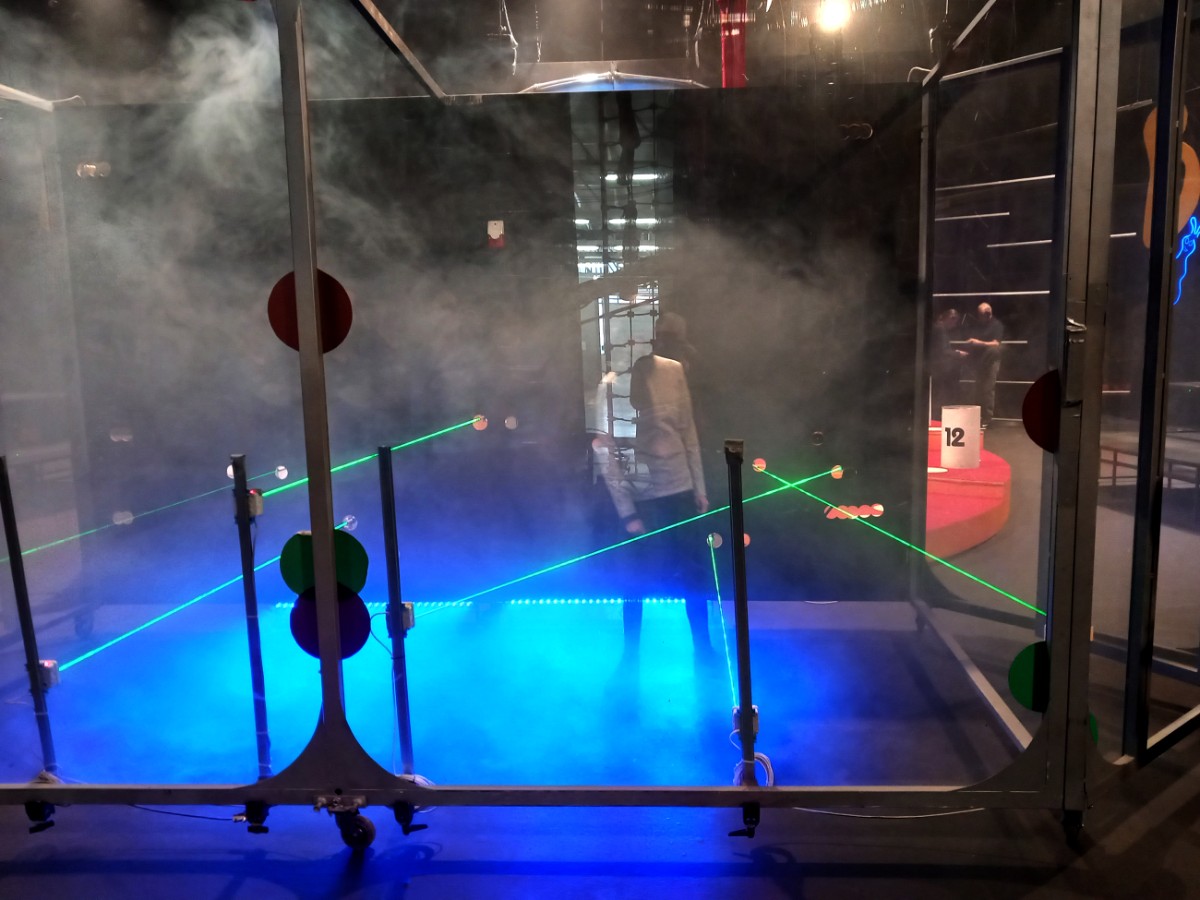 Soutěžící v laserovém poli, s tmavými brýlemi je to složité projít...