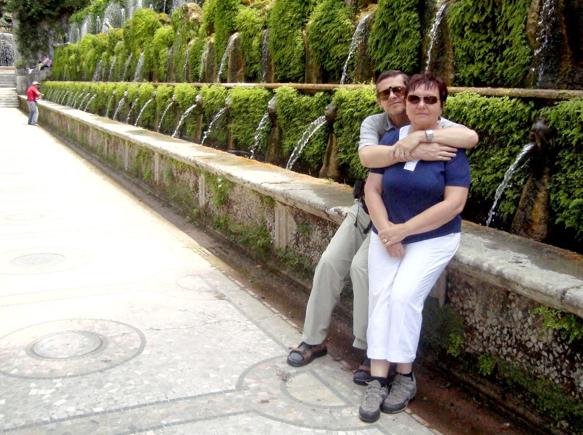 Posezení v kavárně Villy d'Este v městečku Tivoli nedaleko Říma. *