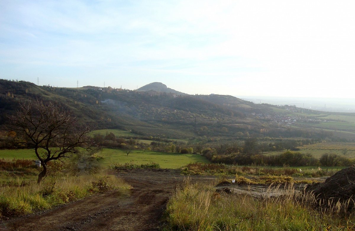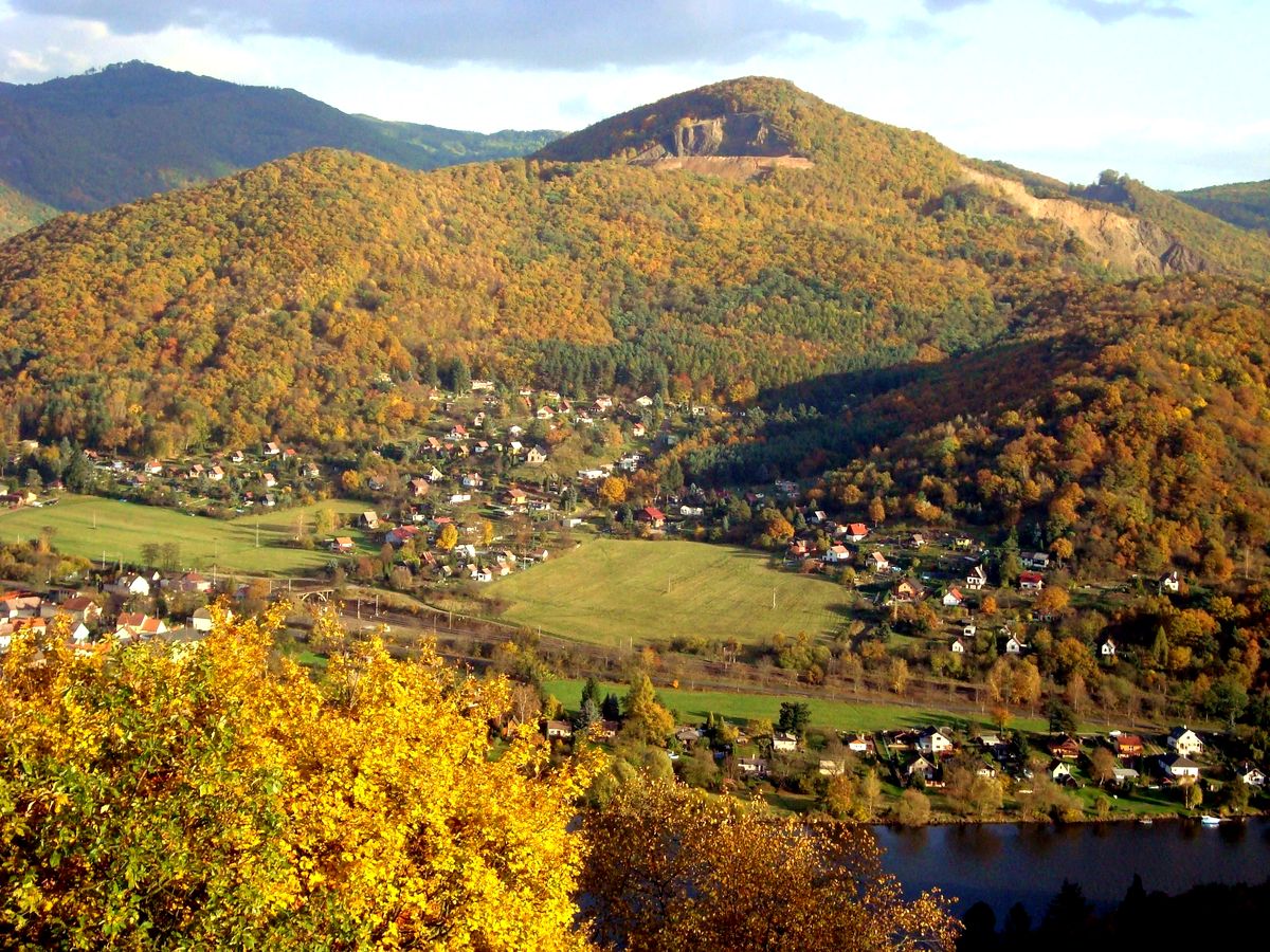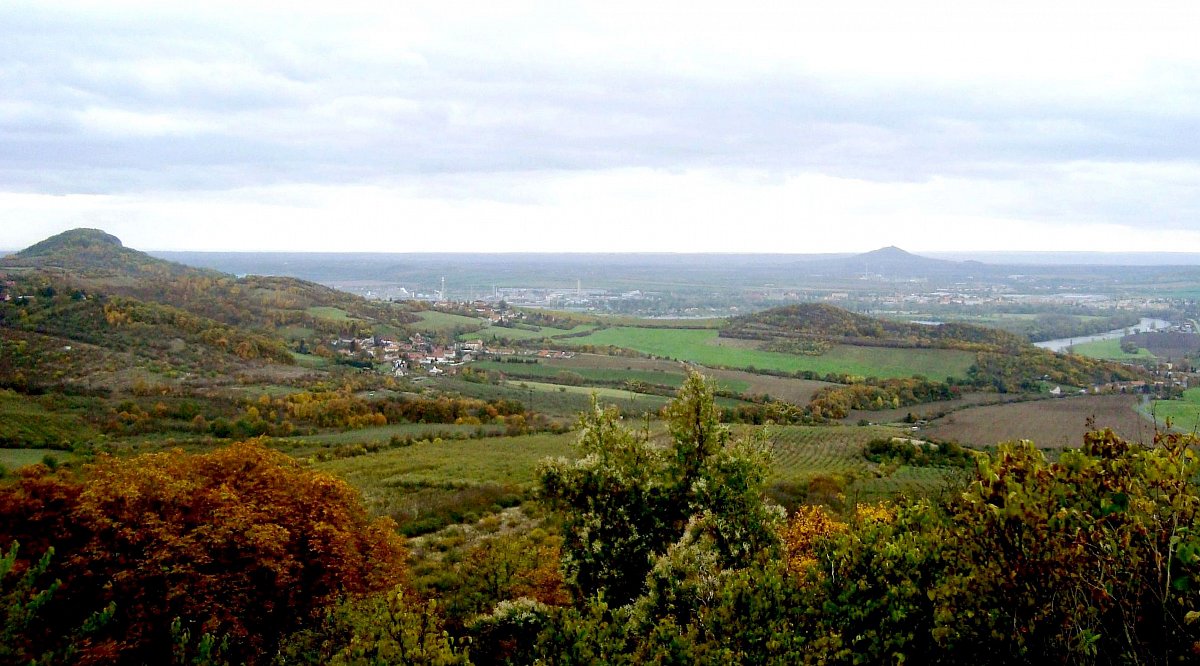Pohled se zříceniny hradu Kamýk na Bídnici a Lovosice