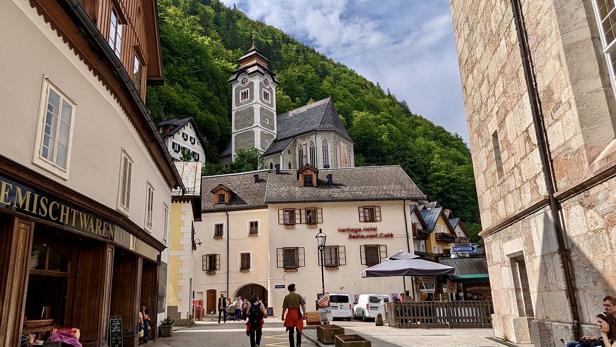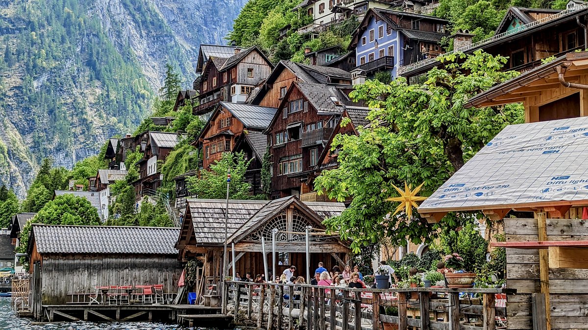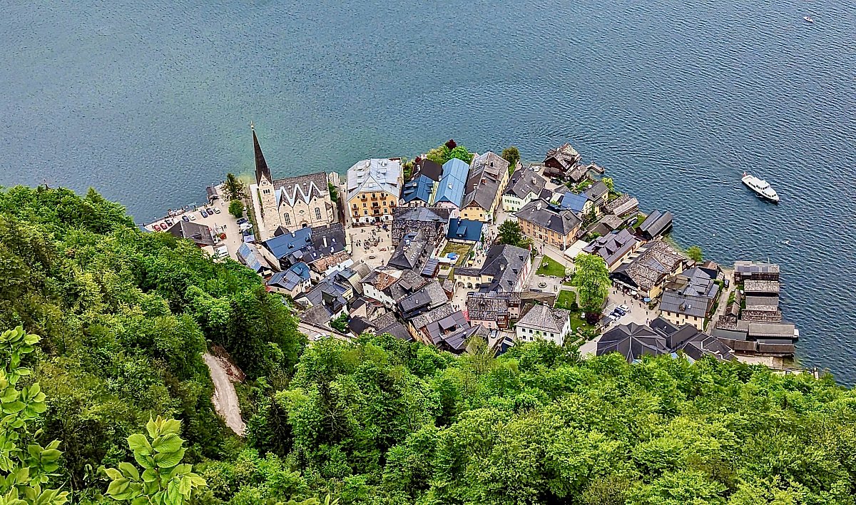 Pohled na část Hallstattu z vyhlídkové plošiny