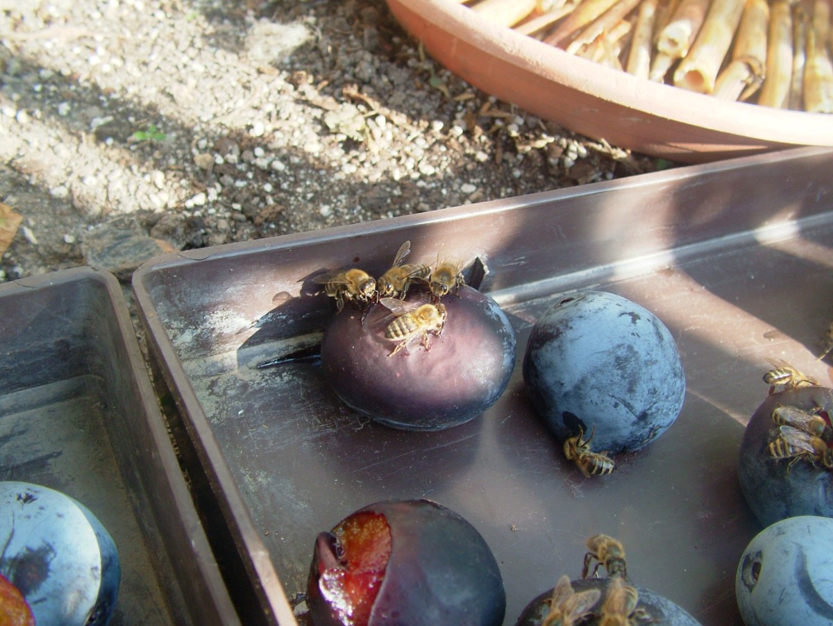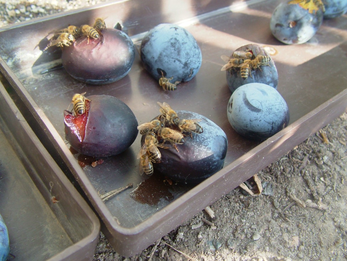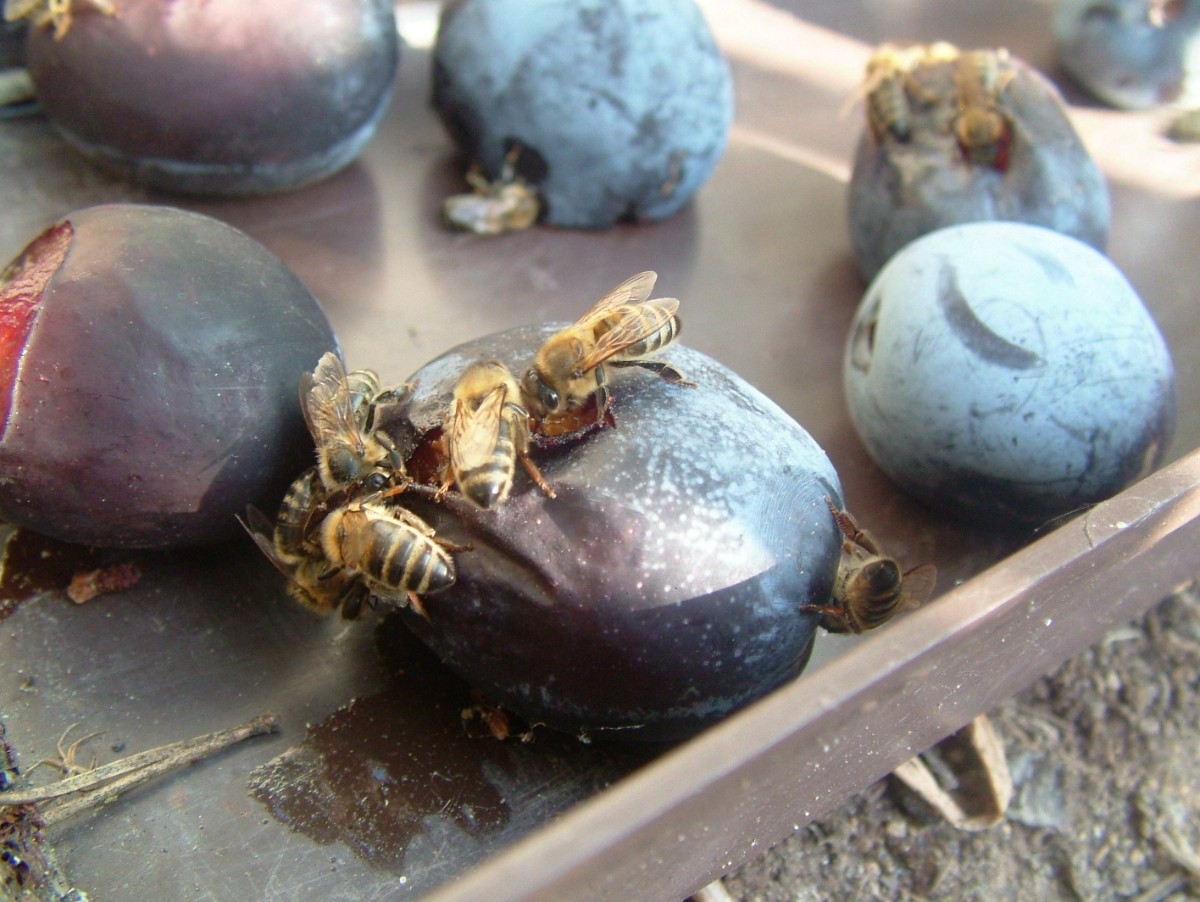 Spadané švestky jsou sladké a šťavnaté, včelky se jich nemohou nabažit.