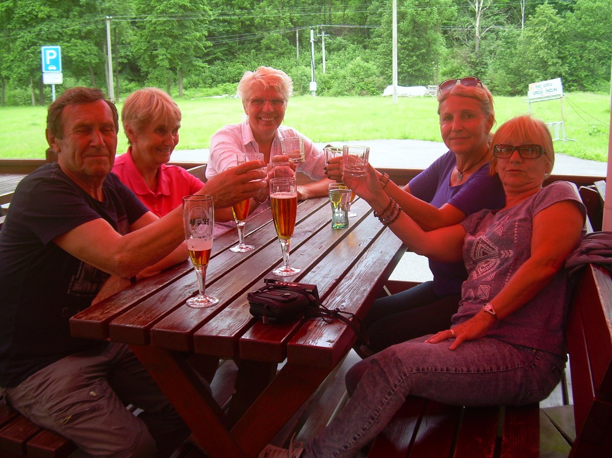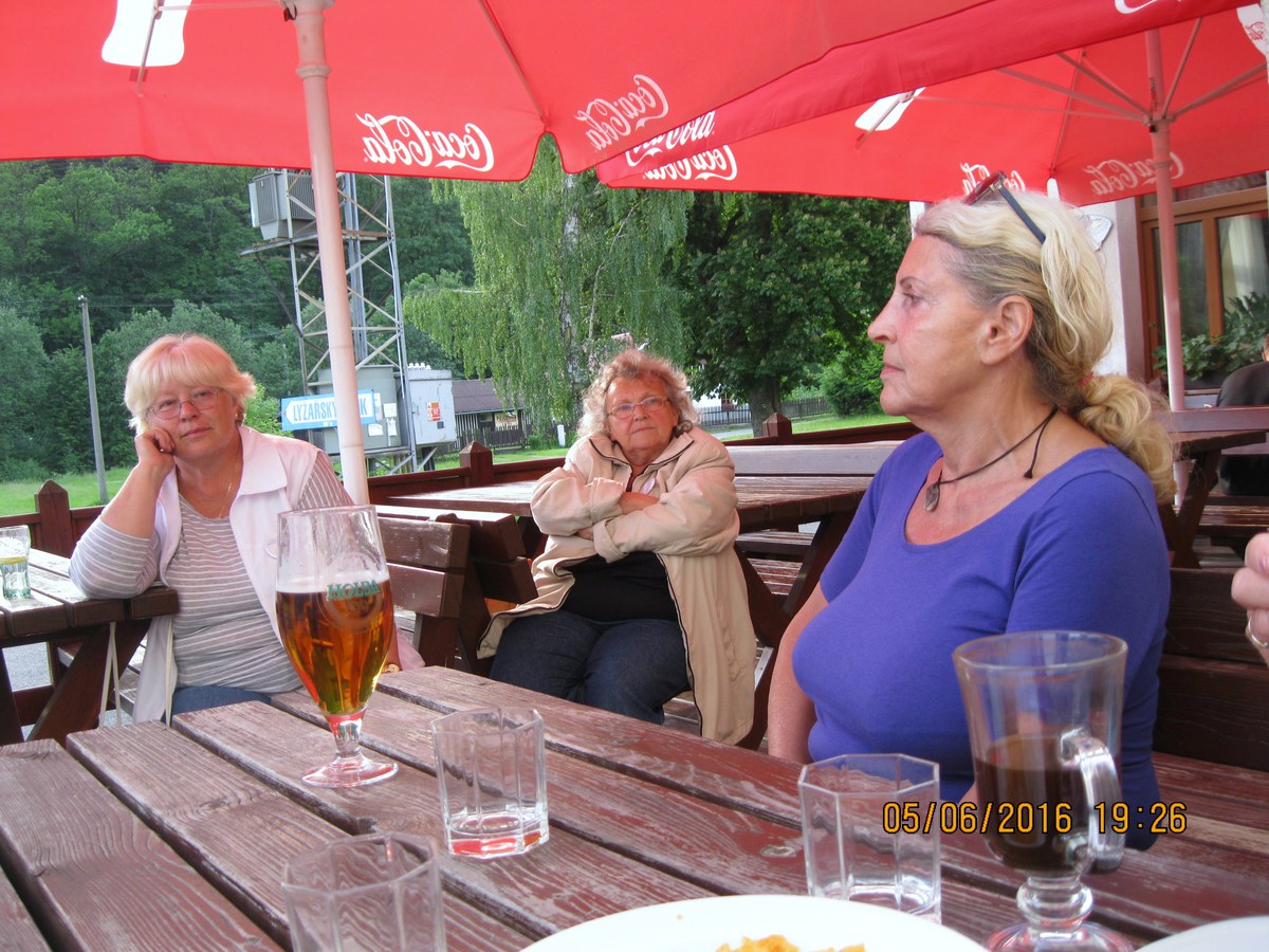 V neděli v podvečer scházíme se na terase penzionu, abychom se s Loučnou rozloučili a na zdar setkání i60 v příštím roce připili! Přivítali jsme mezi sebou majitele penzionu, ochutnali báječnou slivovičku a vůbec jsme netušili, jak zpívat dovedeme. Na shledanou v roce 2017!