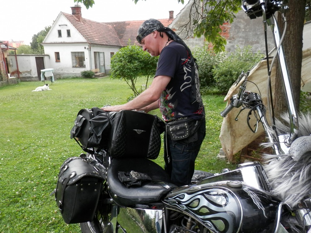 Pan Rehberger se svou motorkou