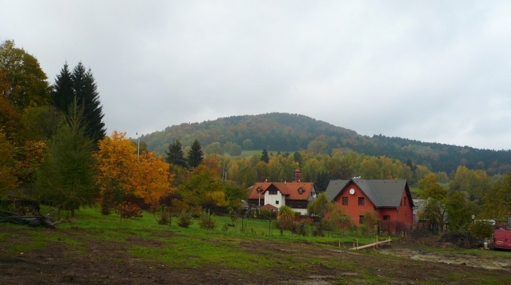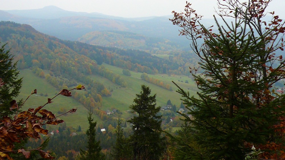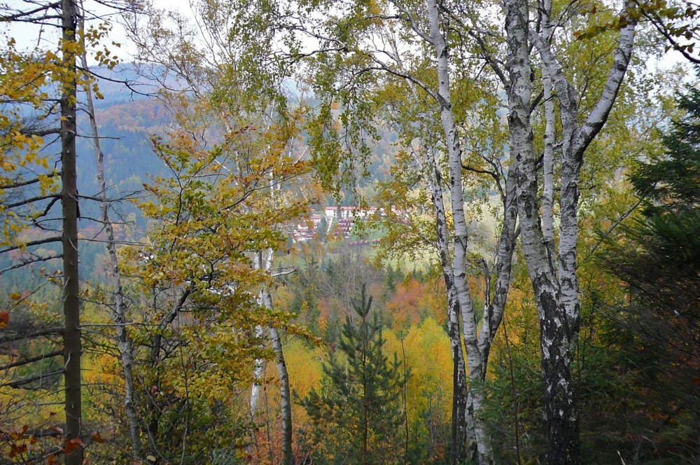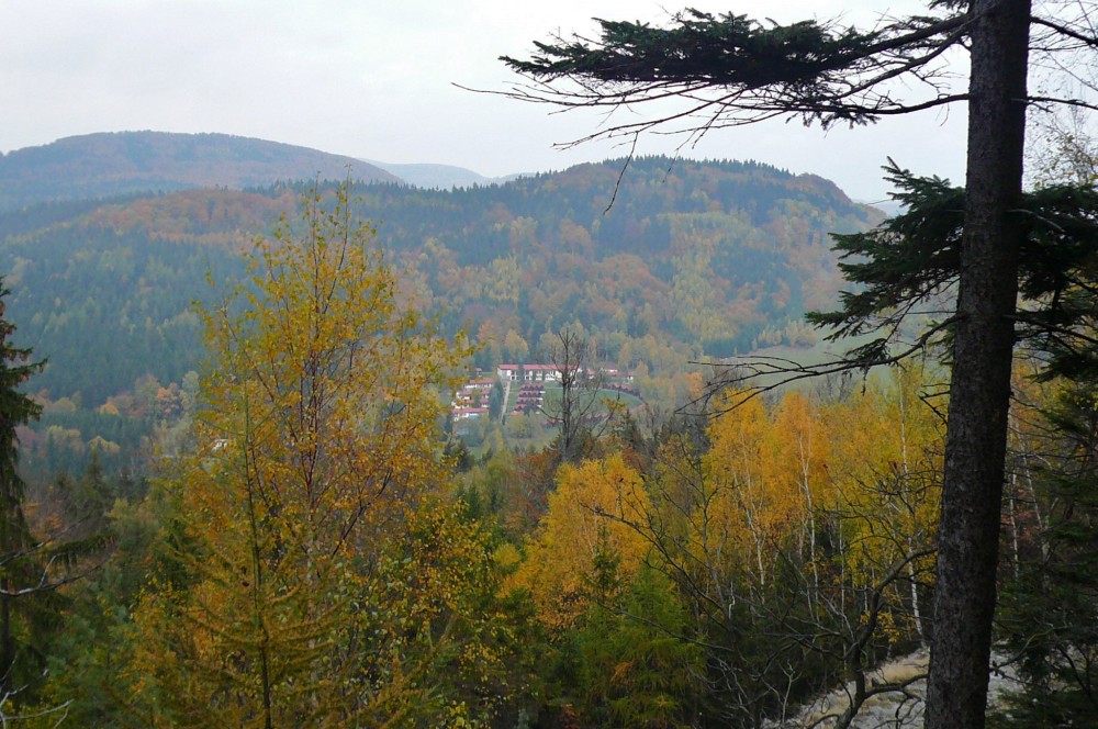 k hraniční hoře Hvozd nad Krompachem, vpravo to bílé je známá léčebna Martiňák