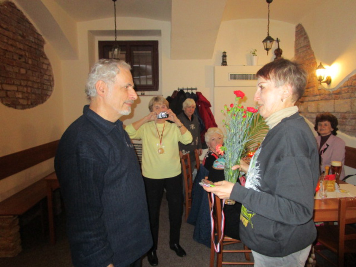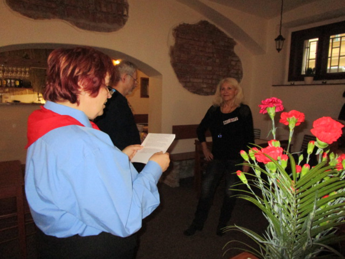 Retro MDŽ s rudými karafiáty a Kaťušou