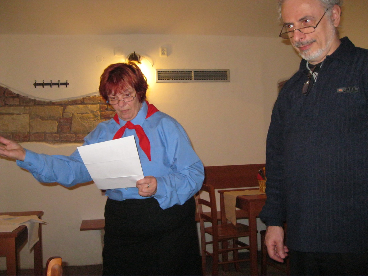 Volná zábava nad vyprázdněnou bonboniérou od Áji, višně v čokoládě, vyšla na všechny,jednu dostal i pan majitel...