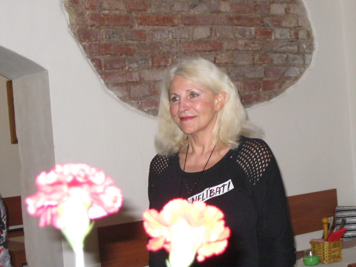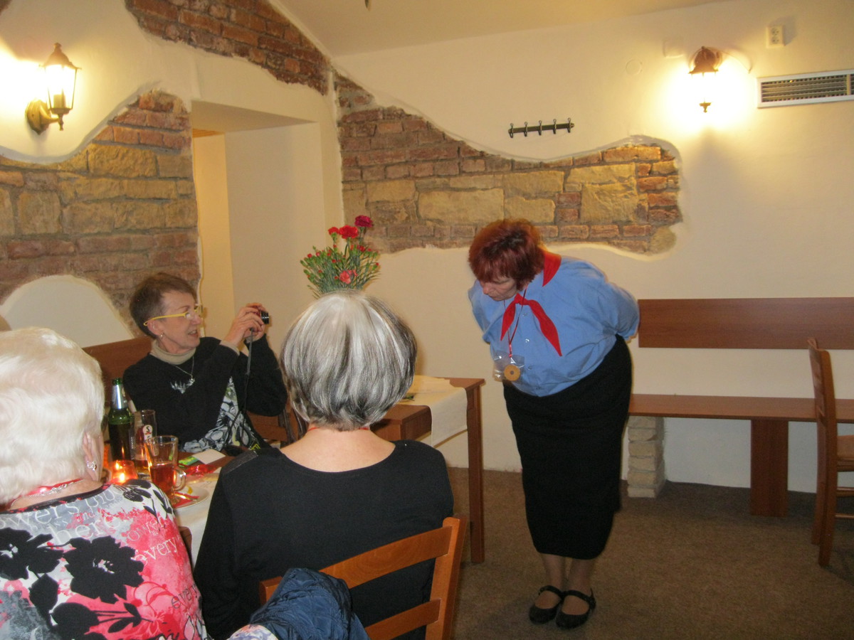Zasloužilá Lidmila se sklání pod tou přemírou štěstí...a také nám předvádí slušivý účes.