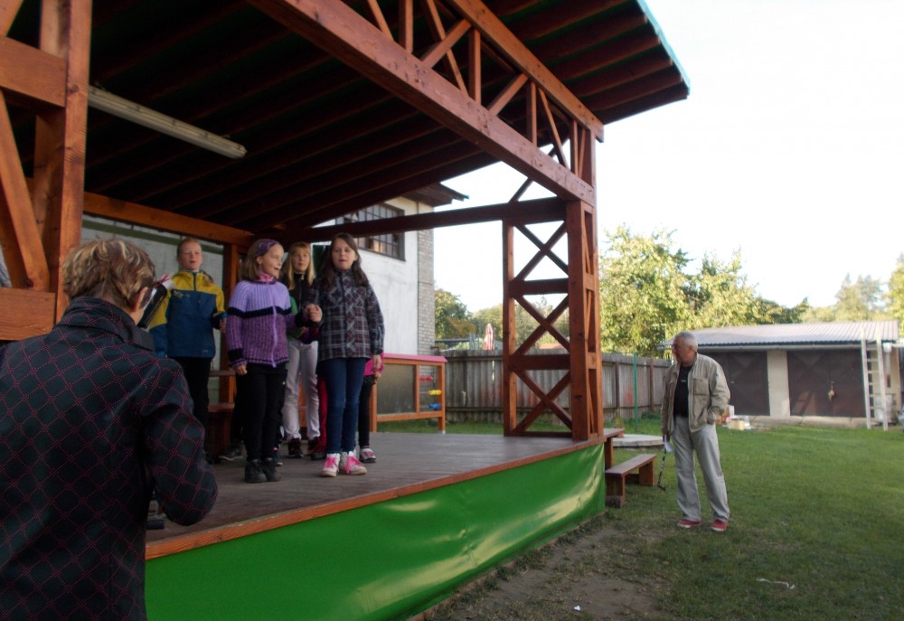 Děti zazpívaly a hlavní organizátor p. Langpaul vše sleduje ostřížím zrakem.