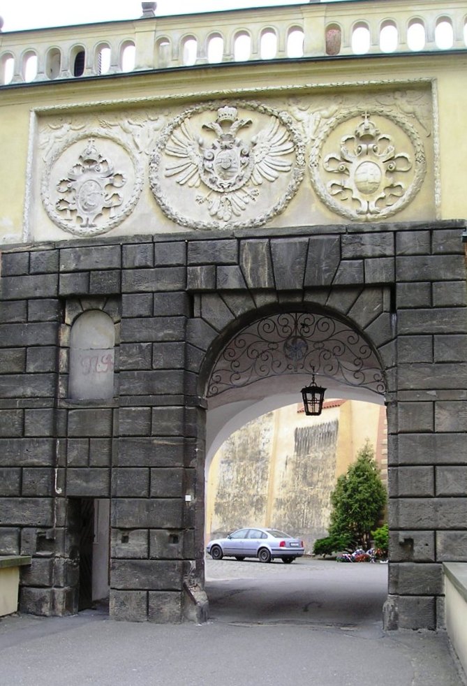 u vstupu do Památníku krále Jiřího z Poděbrad.
