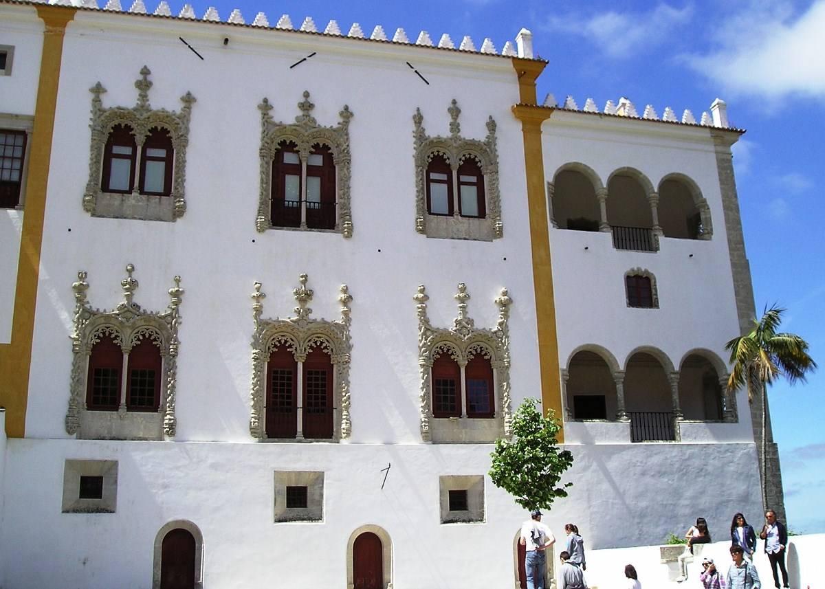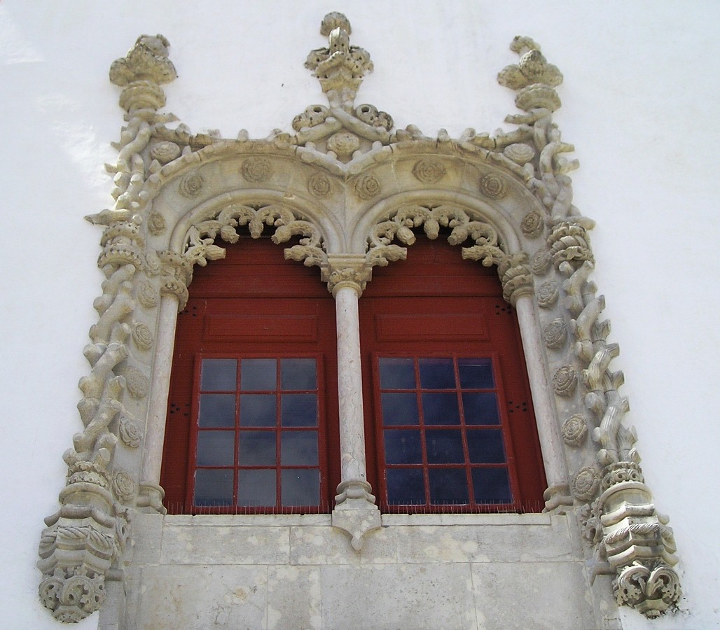 Okna Královského paláce v manuelském slohu krášlí tuto budovu.