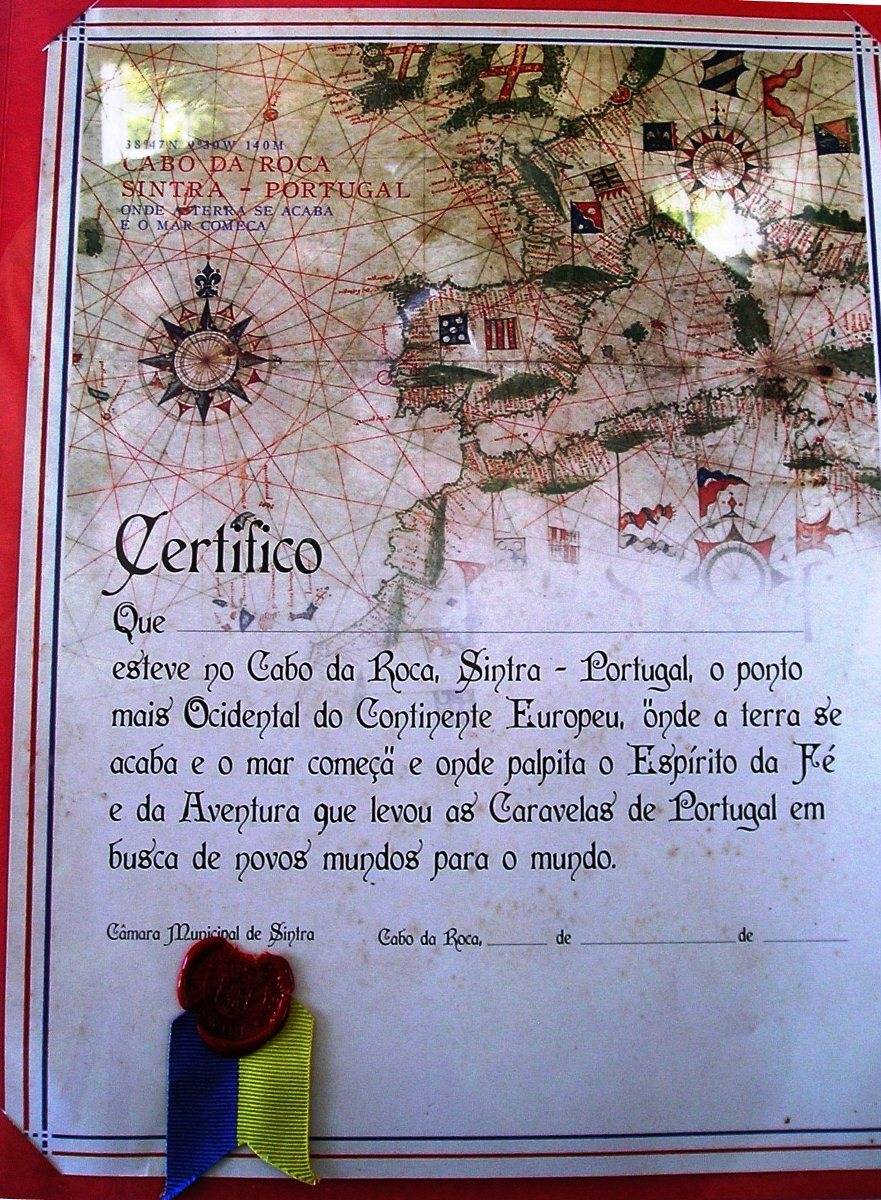 Takový Certifikát o osobní návštěvě Cabo da Roco Vám na mysu prodají.
