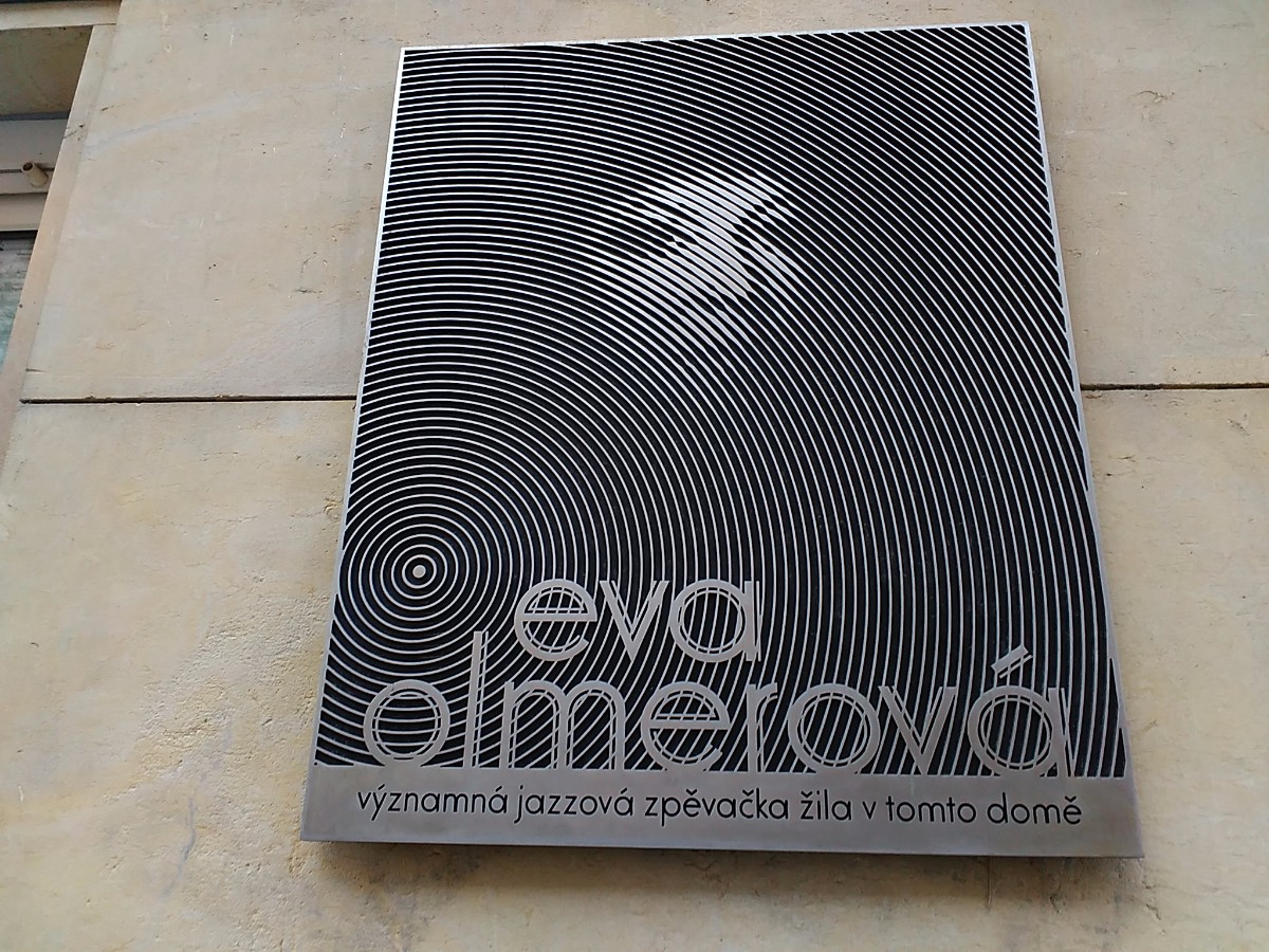 Detail pamětní desky na domě, v němž žila Eva Olmerová