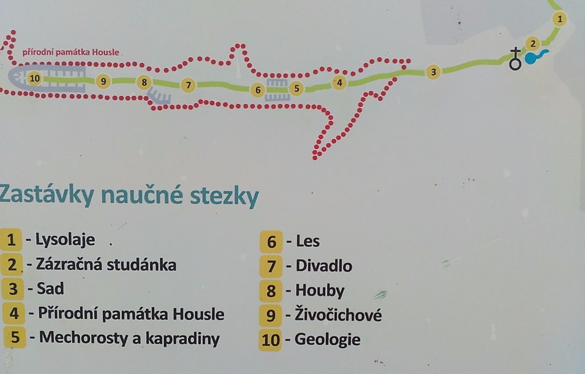 Z Kopaniny do Lysolaj jsme jeli autem a pak pěšky prošli naučnou stezku