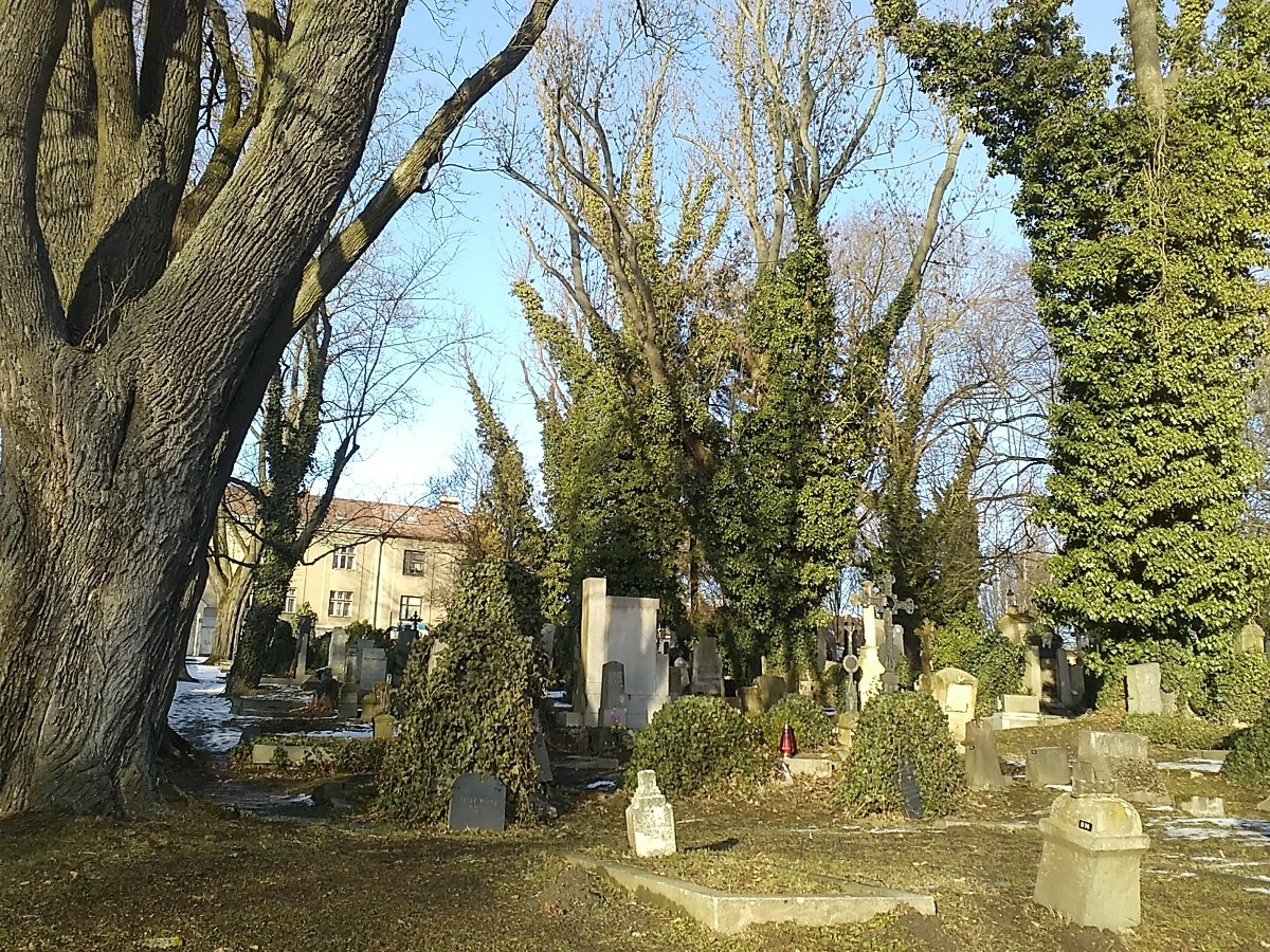 Z tohoto starého hřbitova (už se tu nepohřbívá) je vidět na fotbalové hřiště