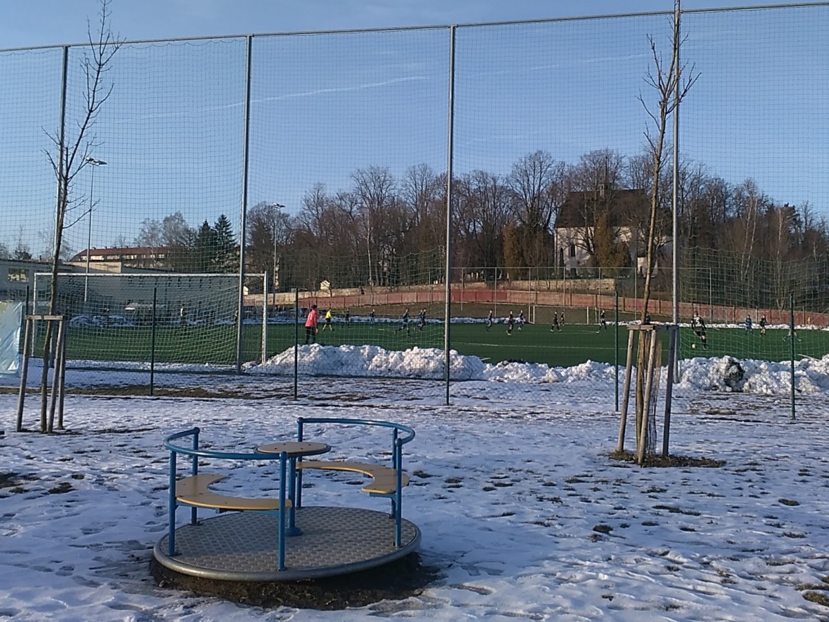 Tady je umělý trávník a zrovna se hrálo. Hřiště sousedí s tím na předchozí fotce.