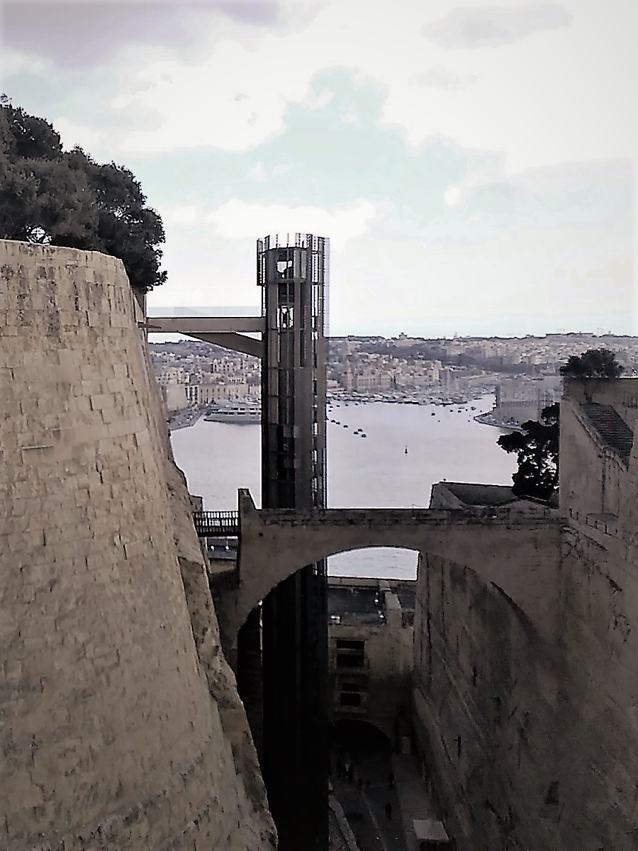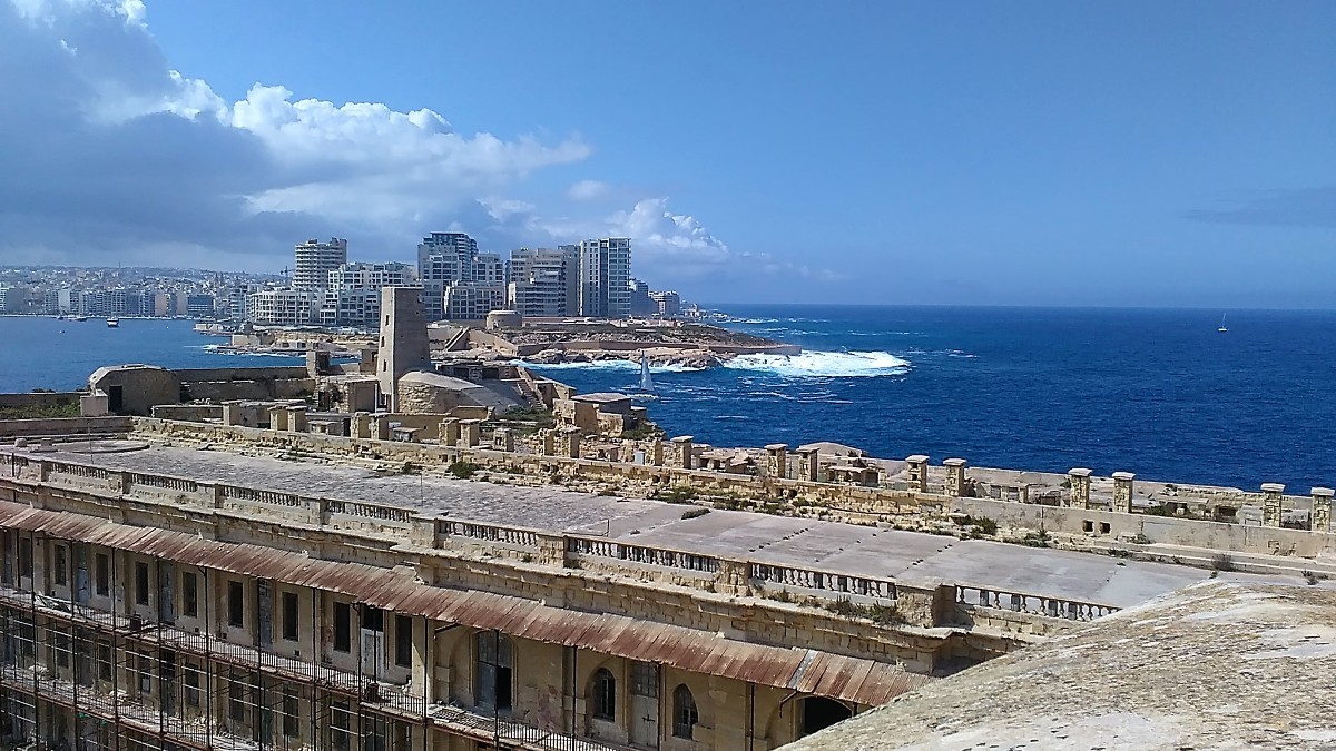 Je to snad nejkrásnější prostorný balkon s kulatým rohem ve Vallettě.