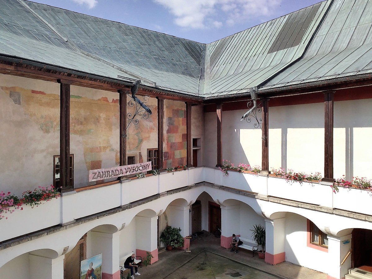 Nádvoří s arkádami. Po požáru v roce 1964 byl objekt 20 let restaurován.