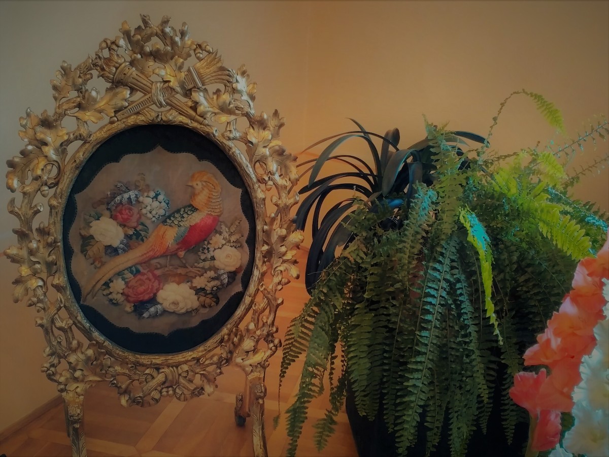 Další exponáty zůstaly na svém místě a s květinami si rozumí.