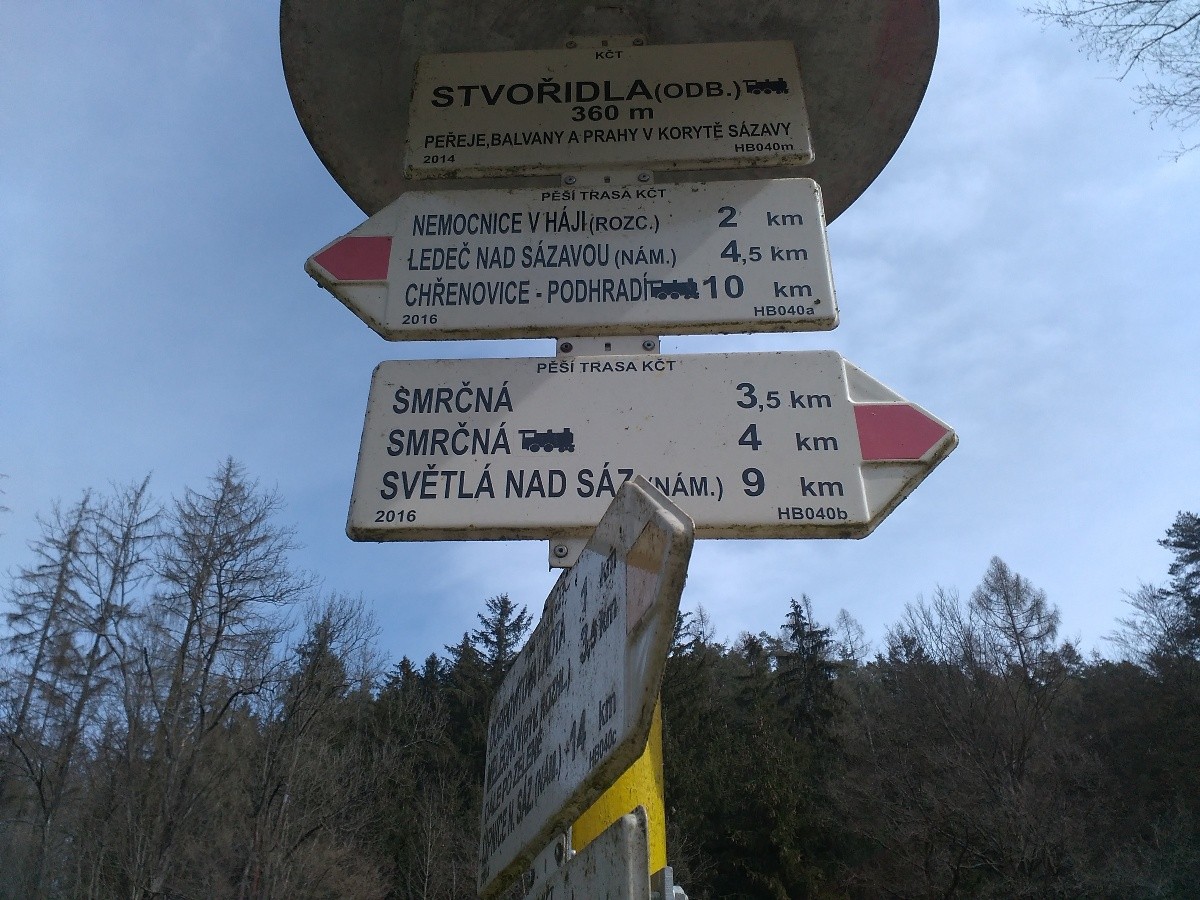 Turistické značení u lávky na Stvořidlech