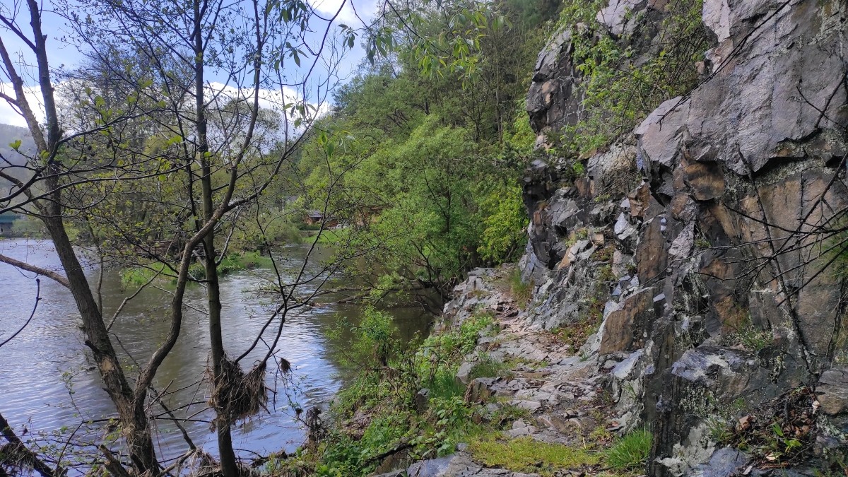 Z Hájku přes Stráž, pak po břehu Ohře, podél skal do Vojkovic