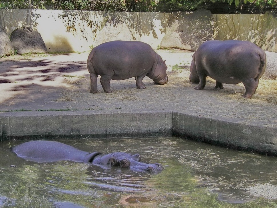 je adaptovaný na život ve vodě. Má velmi silnou kůži, až 3 cm. Tomu navzdory je však hodně citlivá a na suchu často praská. Foto: J.Handlová, v ZOO Praha