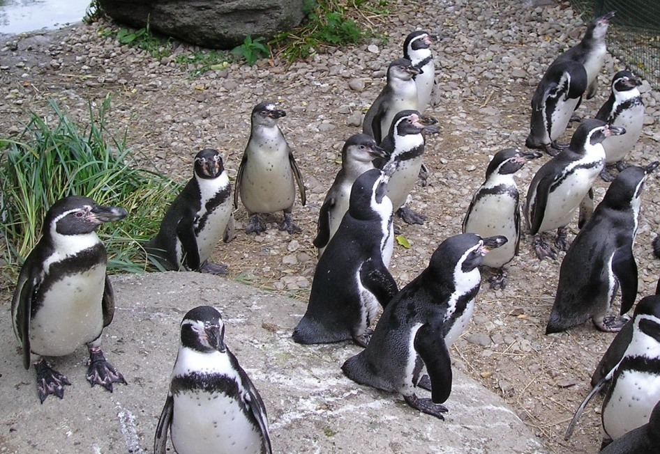 dokonale uzpůsobení k životu ve vodě. Jsou výborní plavci. Mají poněkud uniformní zabarvení, které má významný ochranný důvod. Máváním křídel uzavřeli malou galerii. Foto: J.Handlová, v ZOO Praha