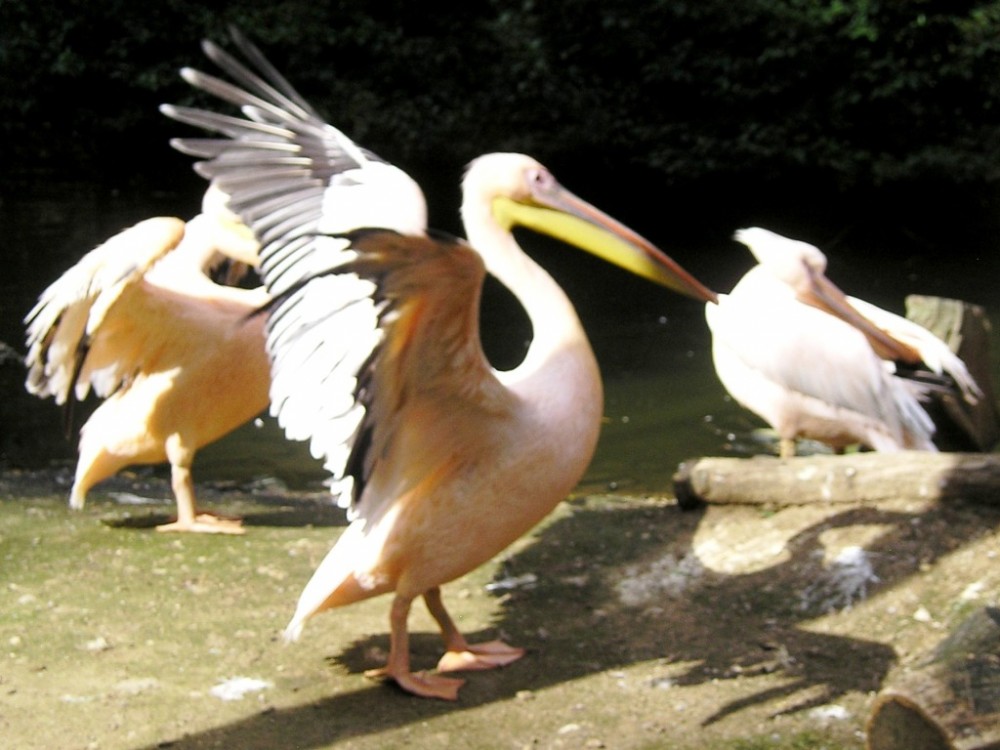 má silný zobák a charakteristický hrdelní vak, do něhož loví potravu, což jsou převážně ryby. Foto J.Handlová, ZOO Jihlava
