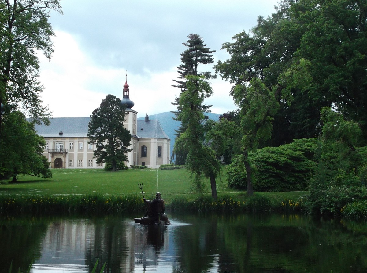 Pohled na zámek přes rybník s Neptunem