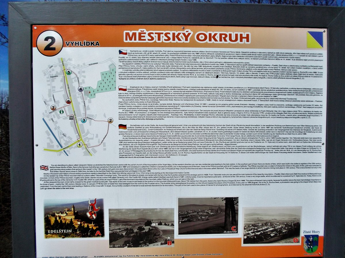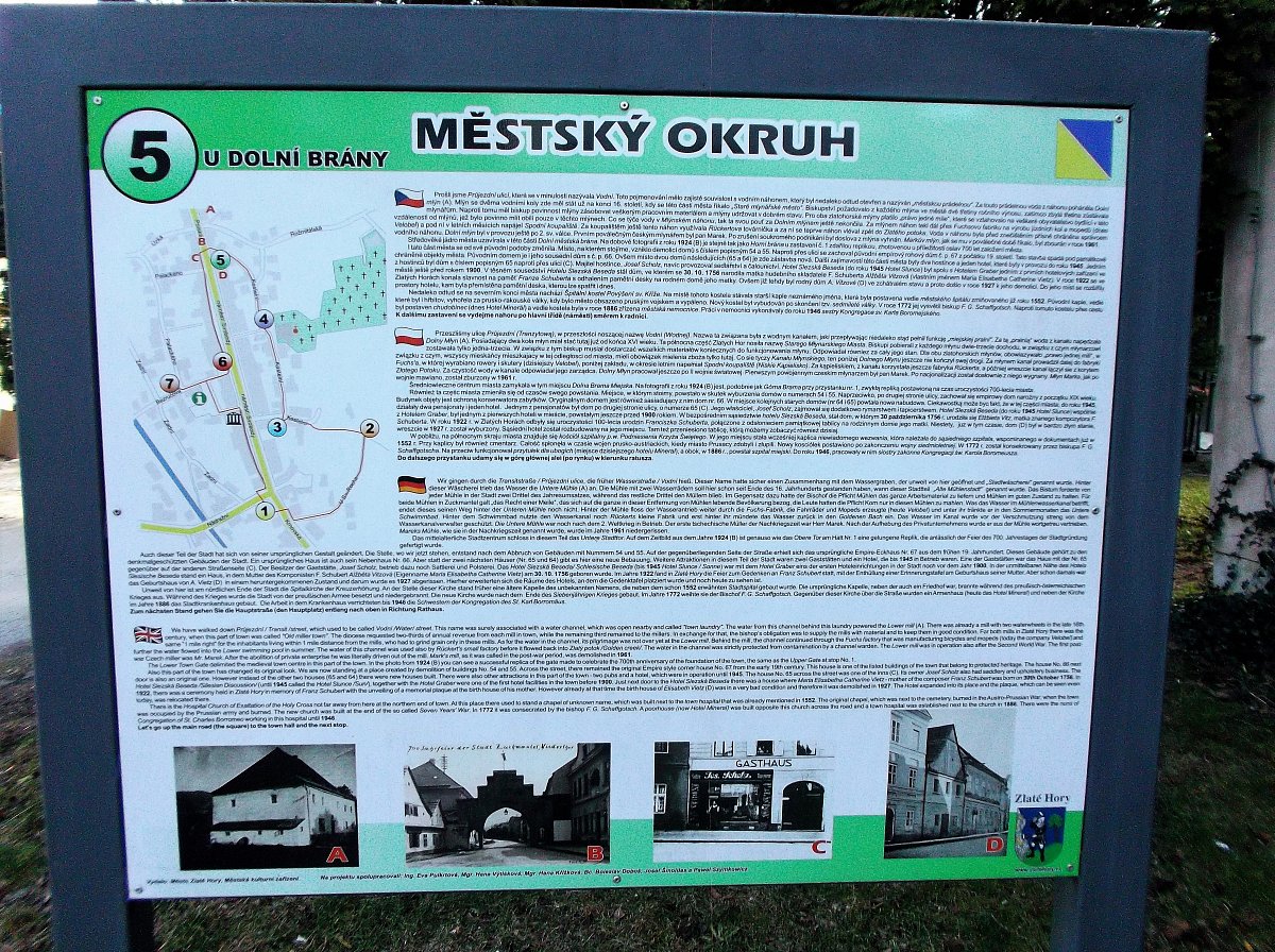 Zlatohorský Městský okruh vás provede historickým jádrem starého hornického města. Je tvořeno hlavní třídou, která je zároveň náměstím, a postranními uličkami.