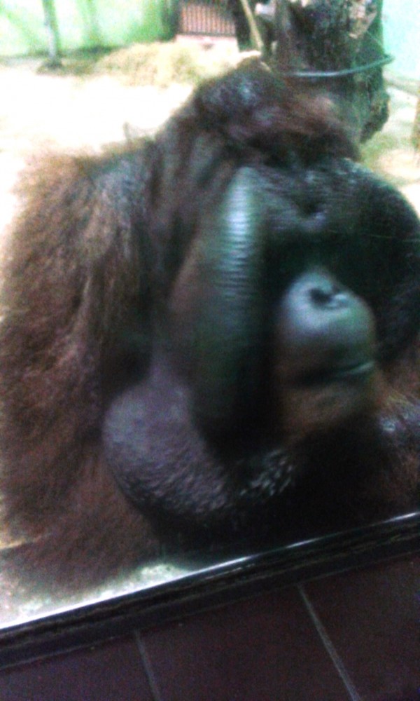 Přivítání od mohutného samce orangutana