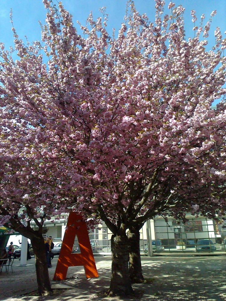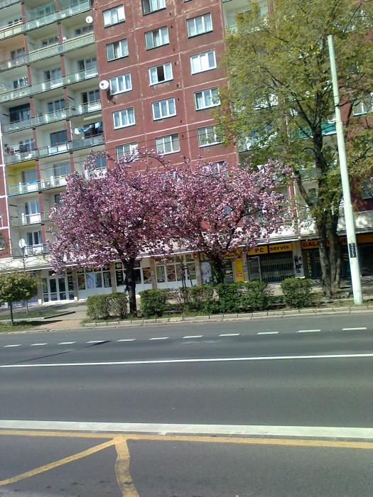 Sakury před nákupním střediskem