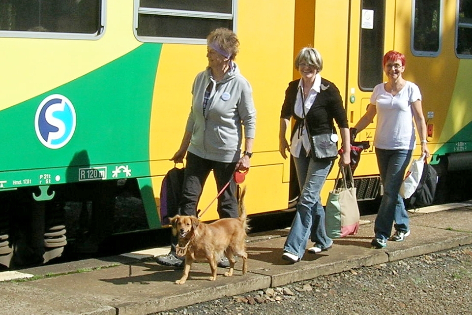 výstup první části výpravy z vlaku