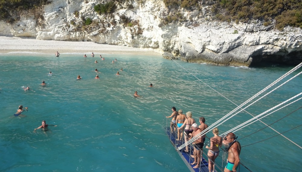 V hlavní roli moře, v pozadí ostrov Kefalonia
