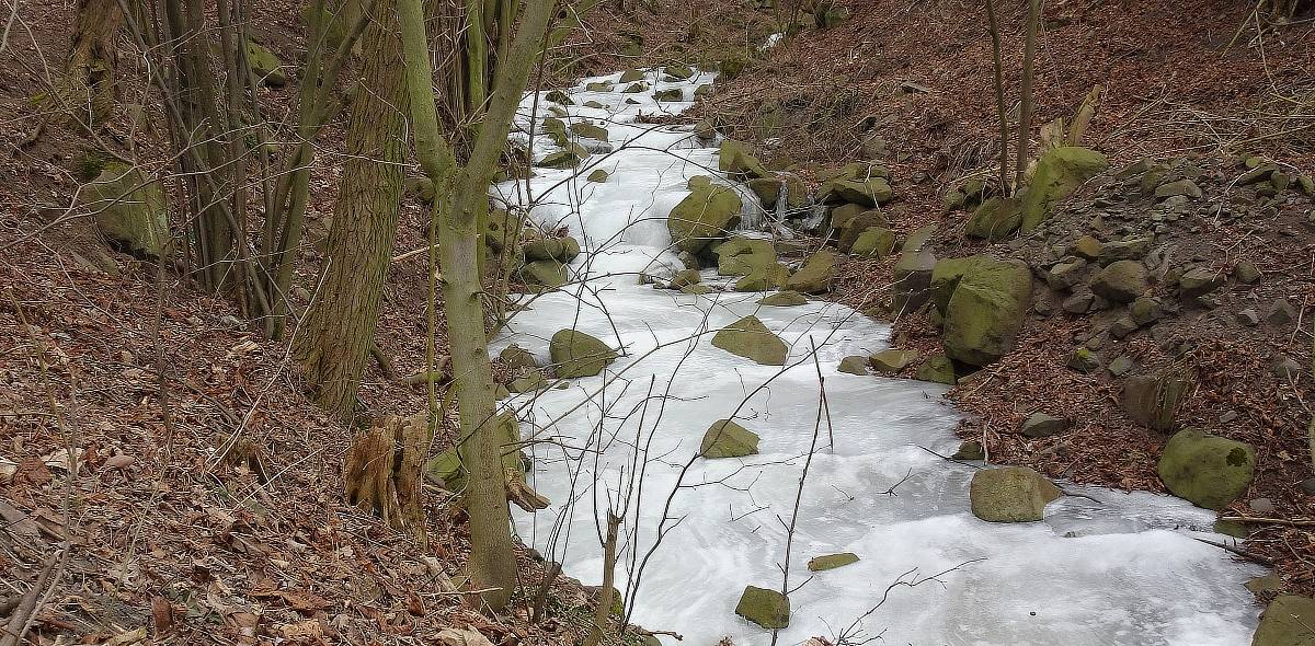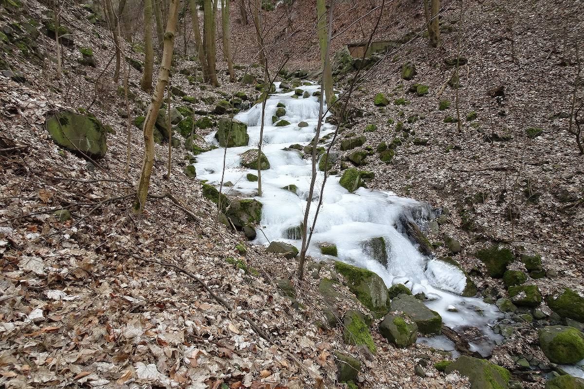5.3.2018 jsem si vyšla údolím Podlešínského potoka k zamrzlému Vaňovskému vodopádu